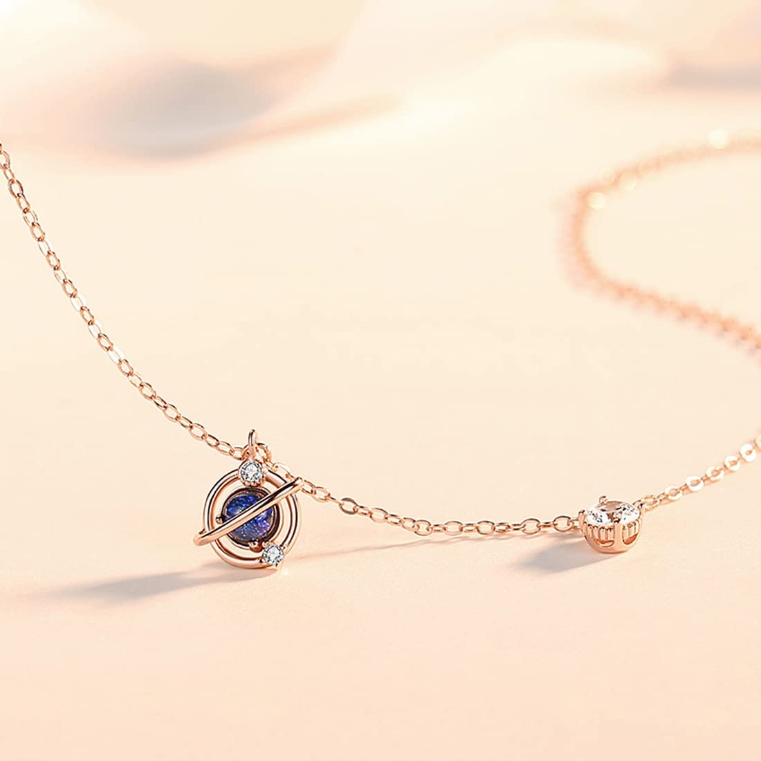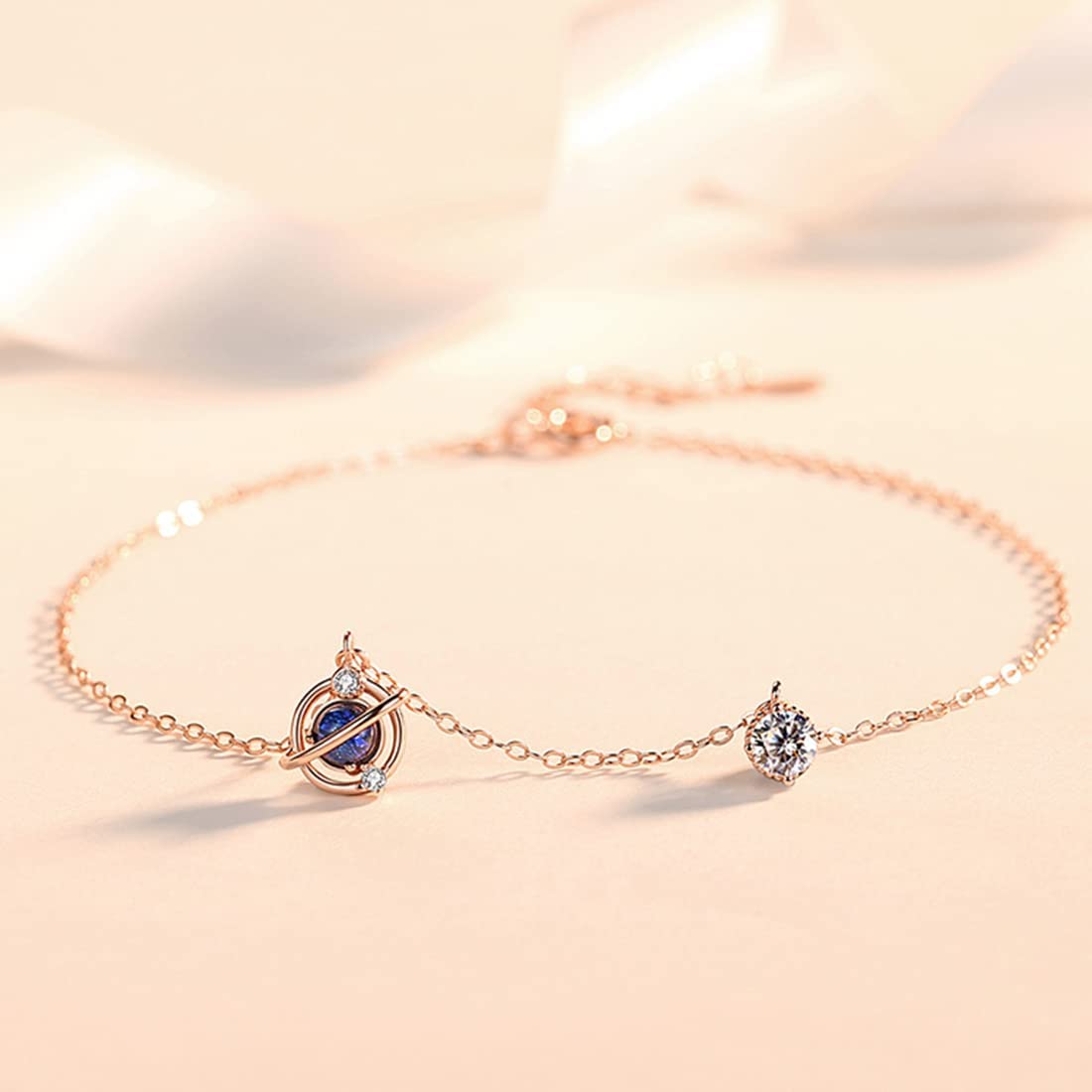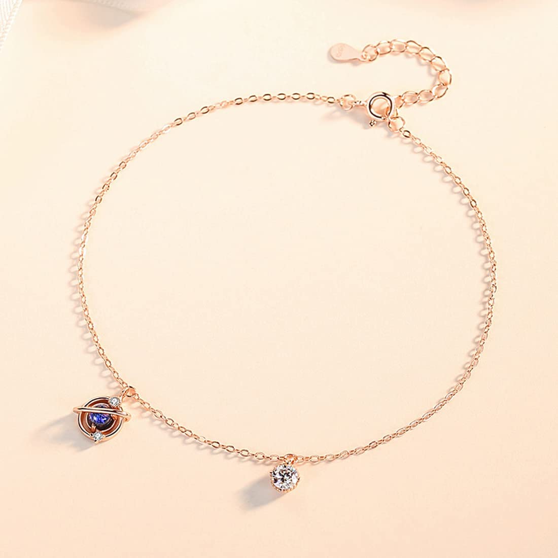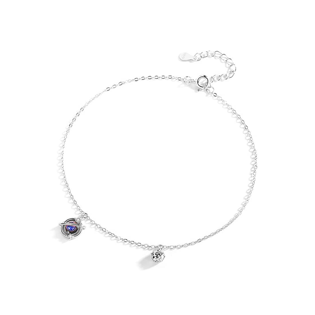 惑星モチーフアンクレット|サファイア風×ジルコニア×シルバー925|宇宙デザイン