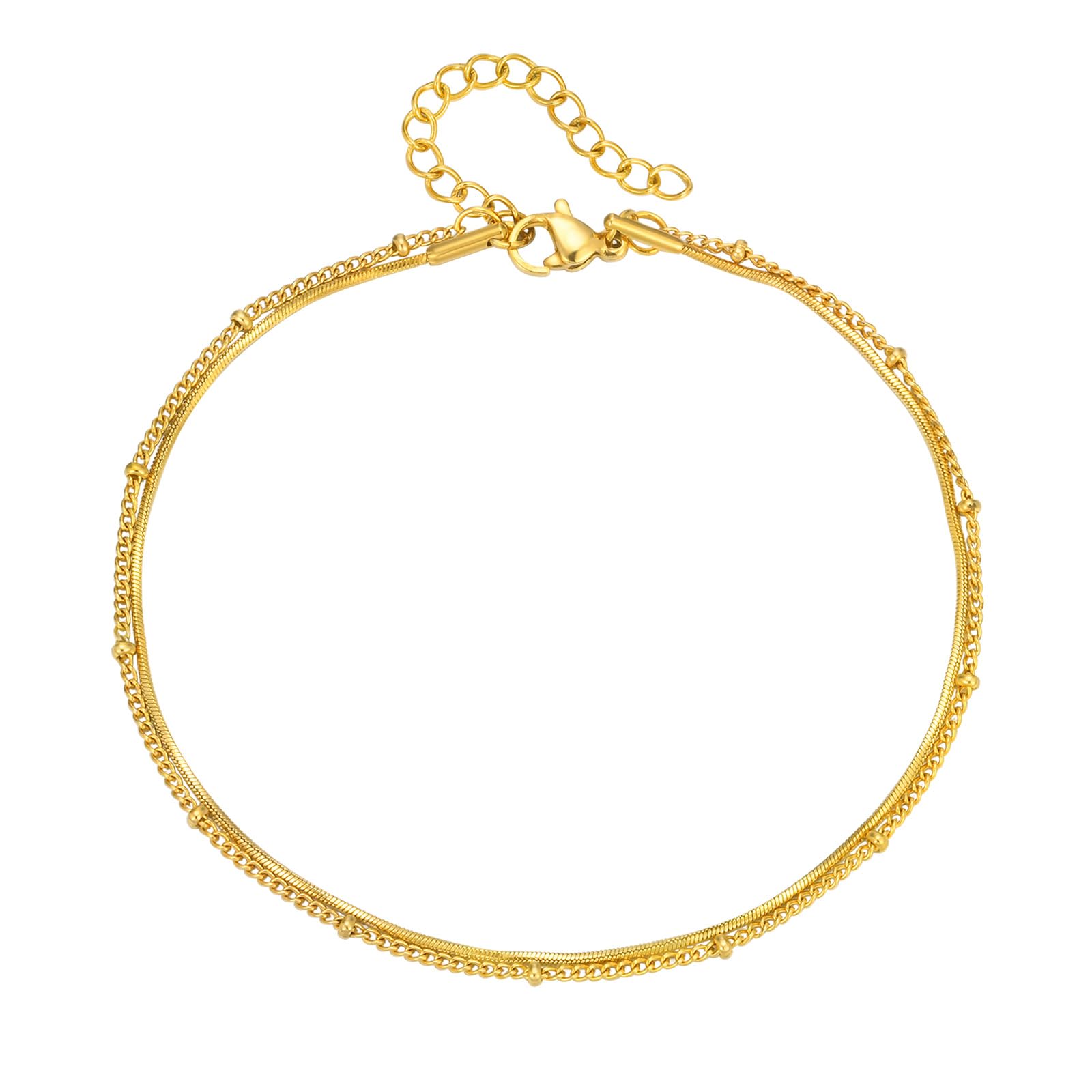 アンクレット レディース ゴールド ダブルチェーン ステンレススチール 調整可能 夏アクセサリーJC-151-JSF-AJ