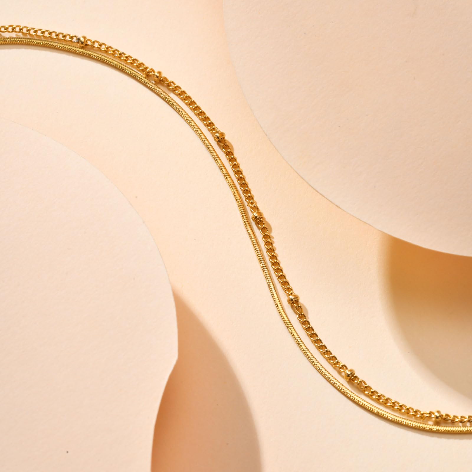 Rockyuのゴールドダブルチェーンアンクレットは、上品で華奢なデザインが足元を美しく演出します。高品質ステンレススチールにIPゴールドメッキを施し、耐久性と輝きを両立。2mm幅の繊細なダブルチェーンには小さなビーズがアクセントとして配置され、動くたびにきらめきます。長さは21〜26cmで調整可能、重さはわずか5gと快適な着け心地。夏のビーチやリゾートコーデ、カジュアルなお出かけにもぴったりで、金属アレルギーにも対応しています。