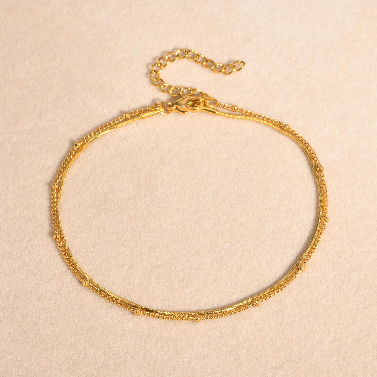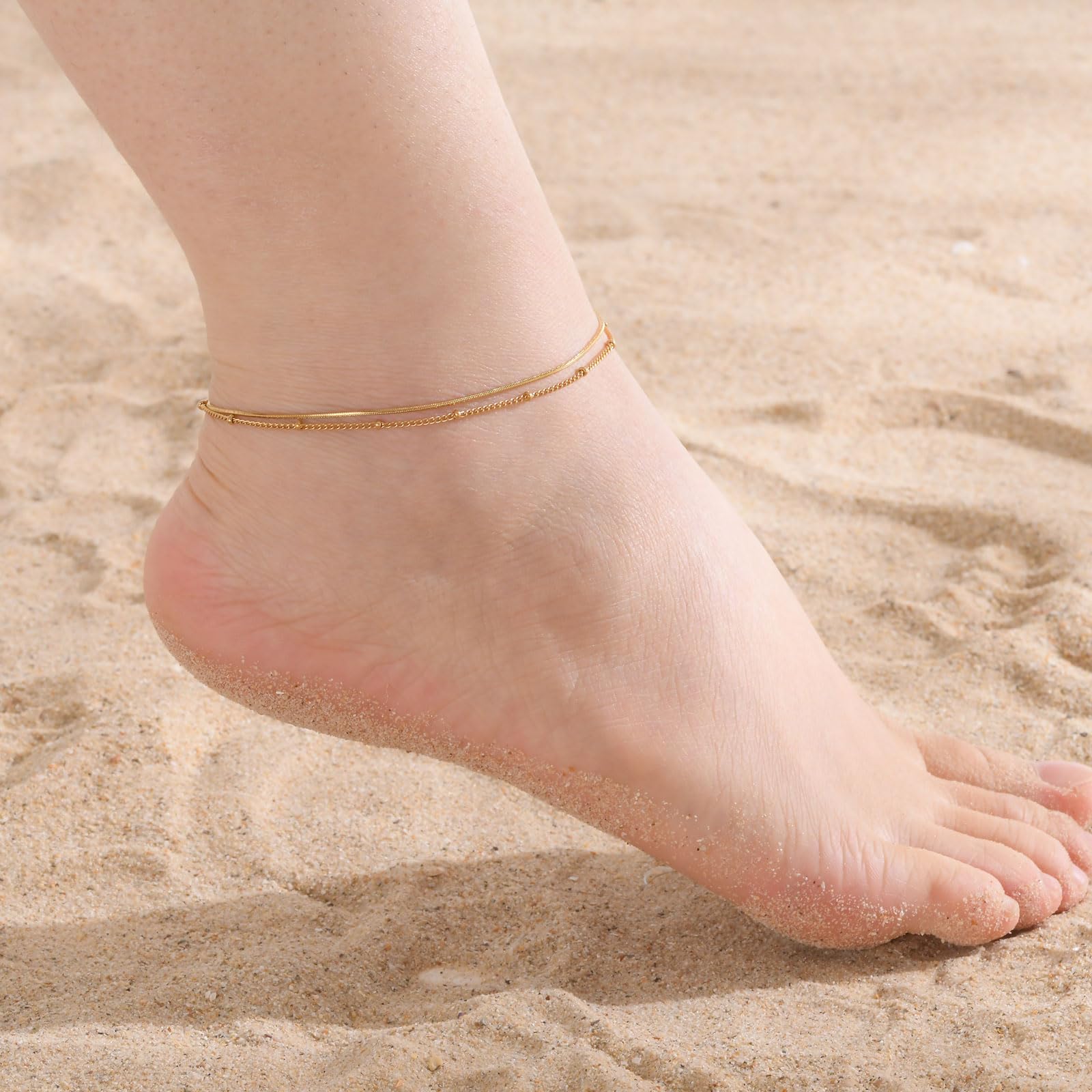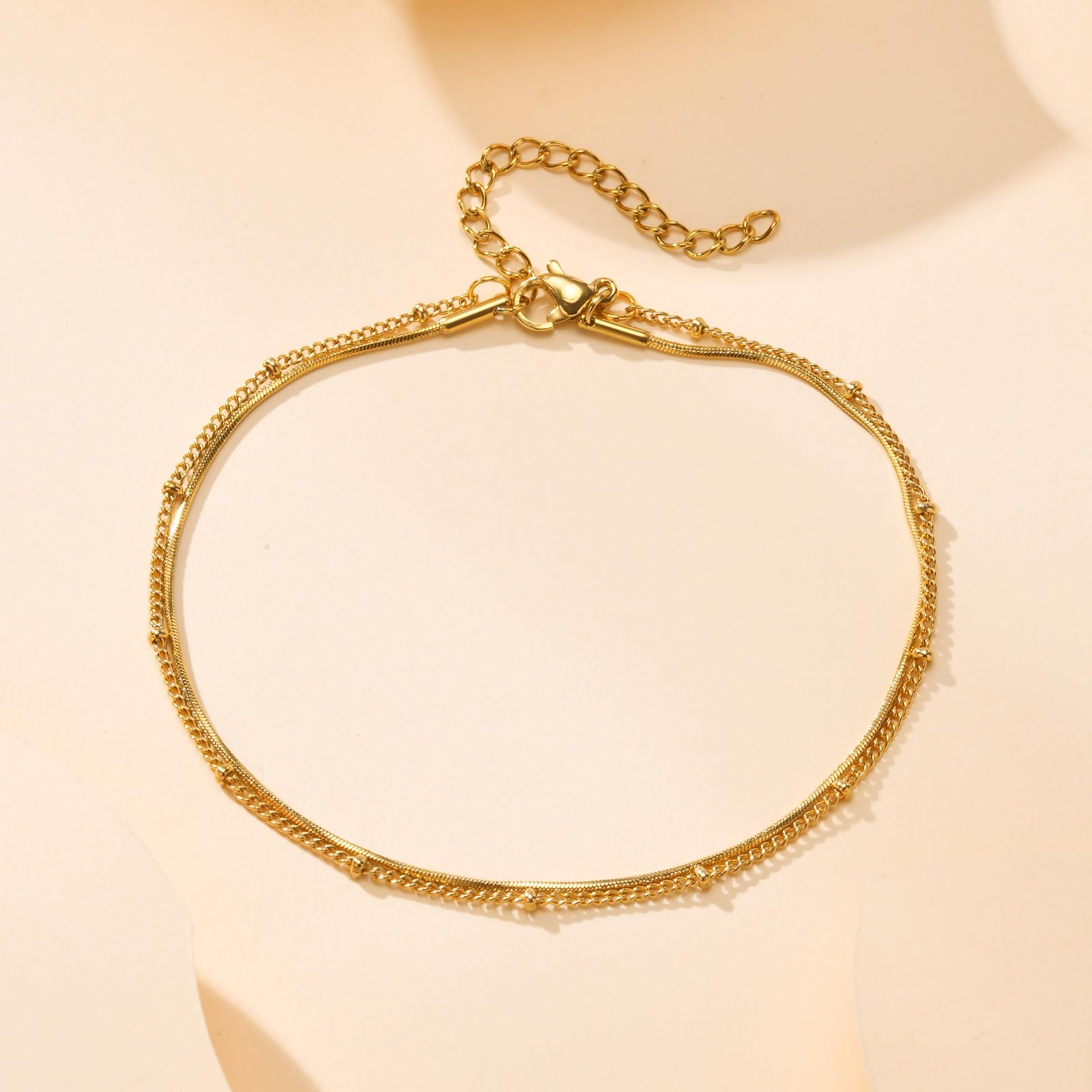 アンクレット レディース ゴールド ダブルチェーン ステンレススチール 調整可能 夏アクセサリー