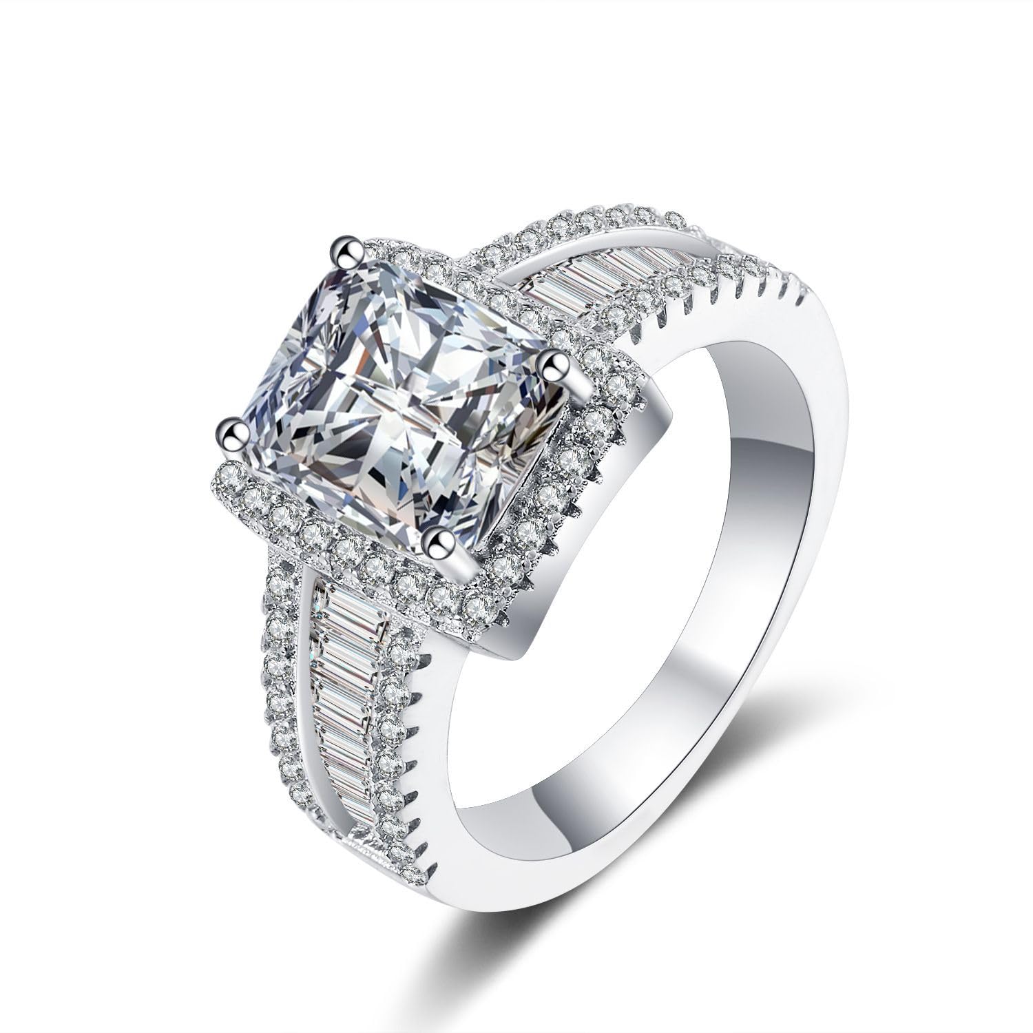 Rockyu プラチナメッキ レディースリング AAAジルコニア 太めデザイン シルバー色