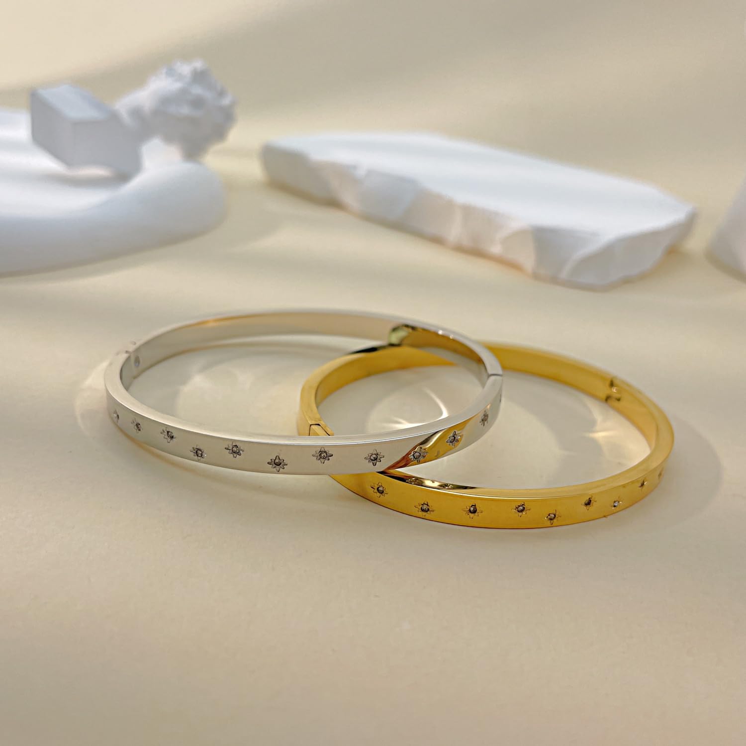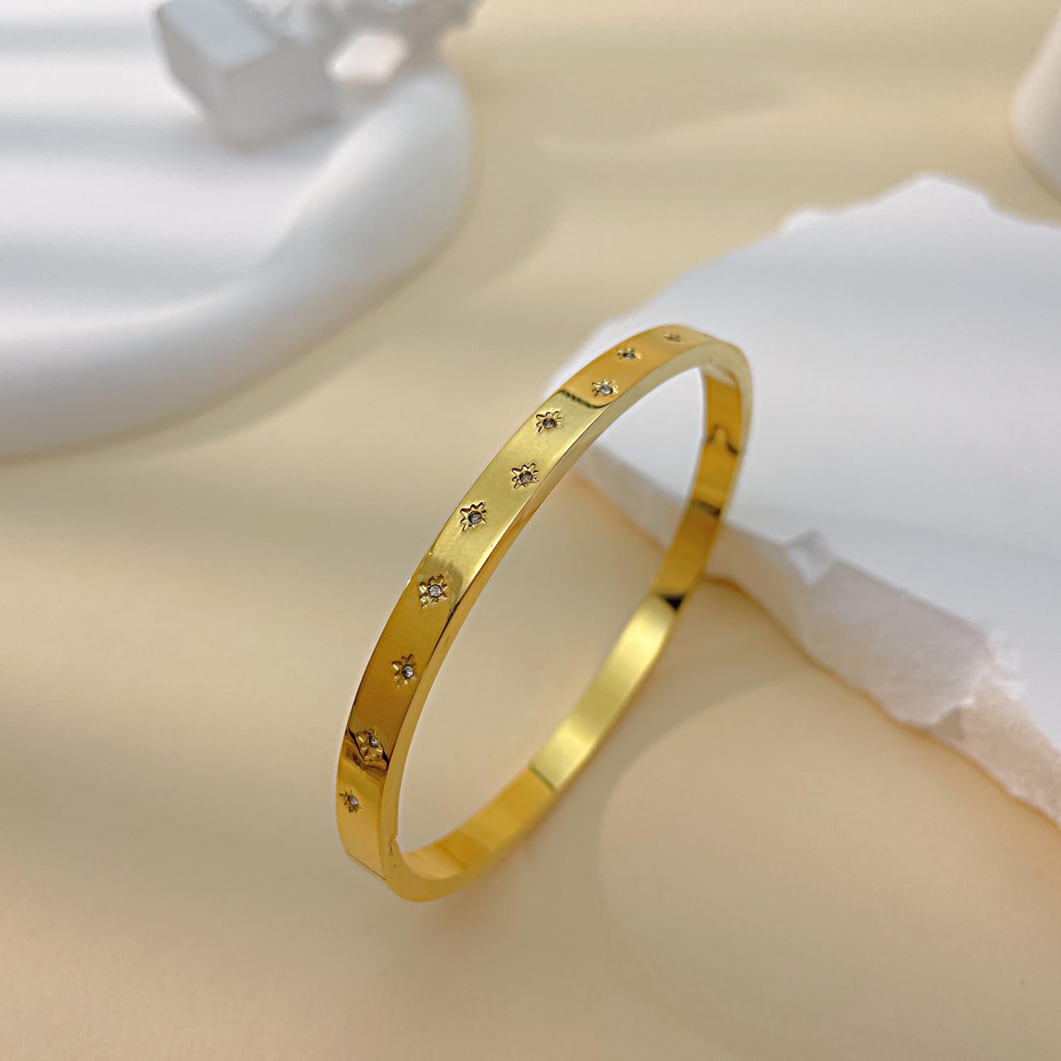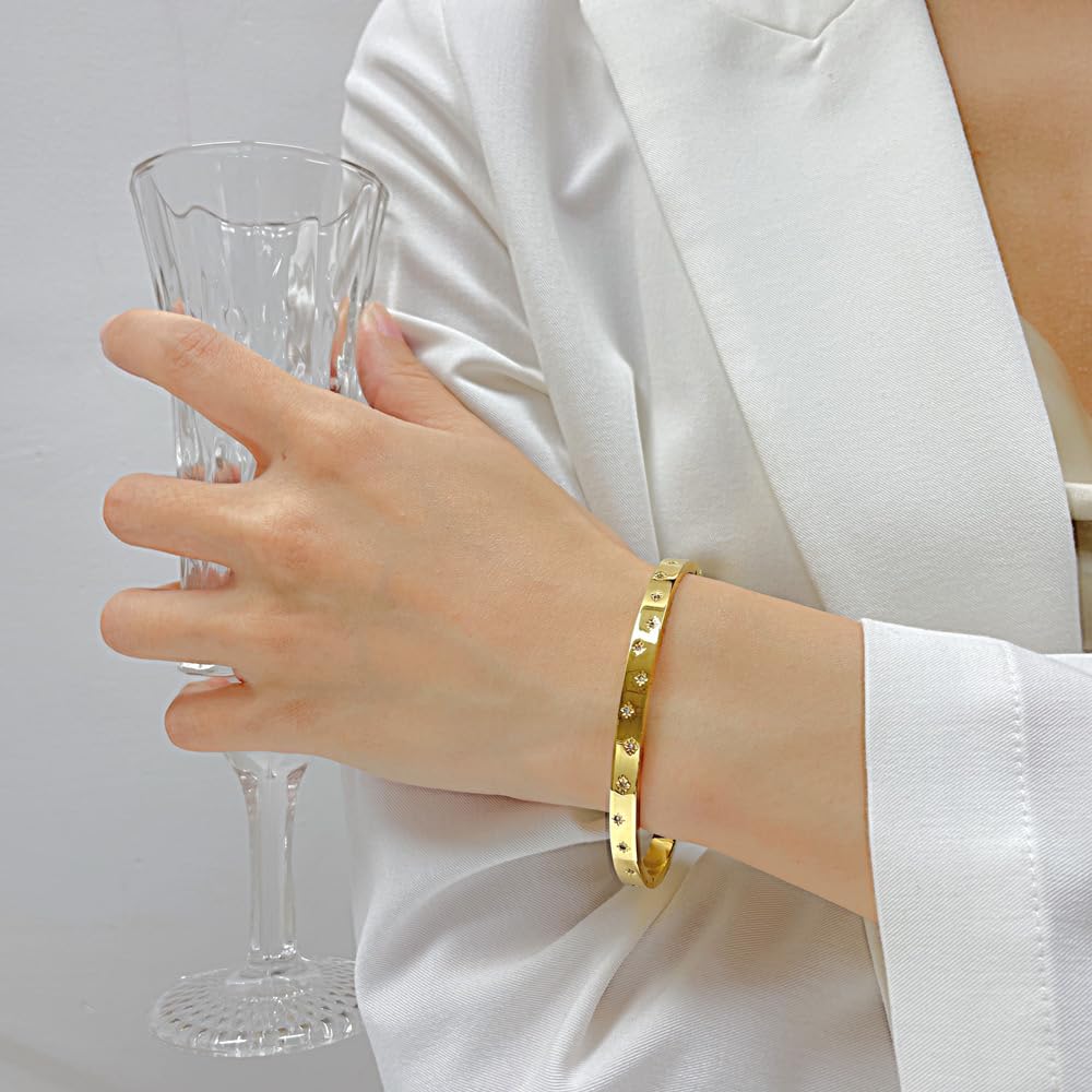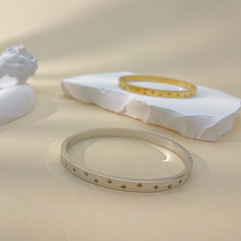 バングル レディース ゴールド シルバー ステンレス 金属アレルギー対応 ジルコニア シンプルデザイン