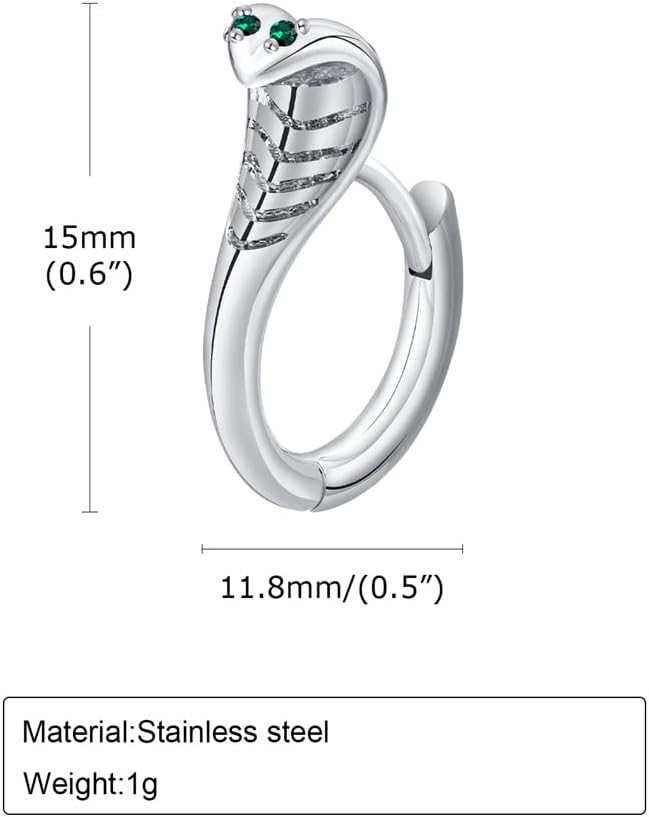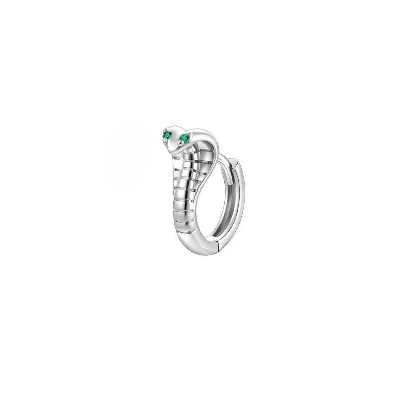 Rockyu ピアス メンズ ステンレス コブラモチーフ フープ シルバー 金属アレルギー対応 片耳用