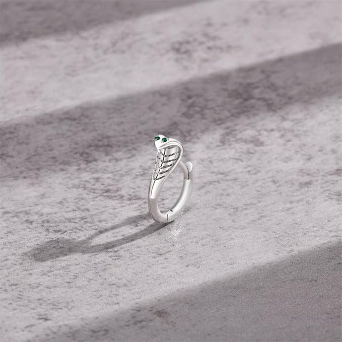 耳元で睨みを効かせるコブラの存在感。Rockyuのコブラモチーフフープピアスは、精巧な蛇のフォルムにエメラルドグリーンの瞳をあしらったステンレス製アクセサリー。直径11.8mm、高さ15mmのコンパクトなサイズ感ながら、しなやかな曲線と細部の彫刻が生み出す迫力は抜群です。金属アレルギーに配慮した素材で、変色やサビに強く、長時間の着用も快適。モード、パンク、ヴィンテージスタイルのアクセントとしてはもちろん、誕生日やクリスマスのギフトにも最適。Rockyuならではの緻密なディテールで、耳元に秘めた力強さと神秘性をプラスします。