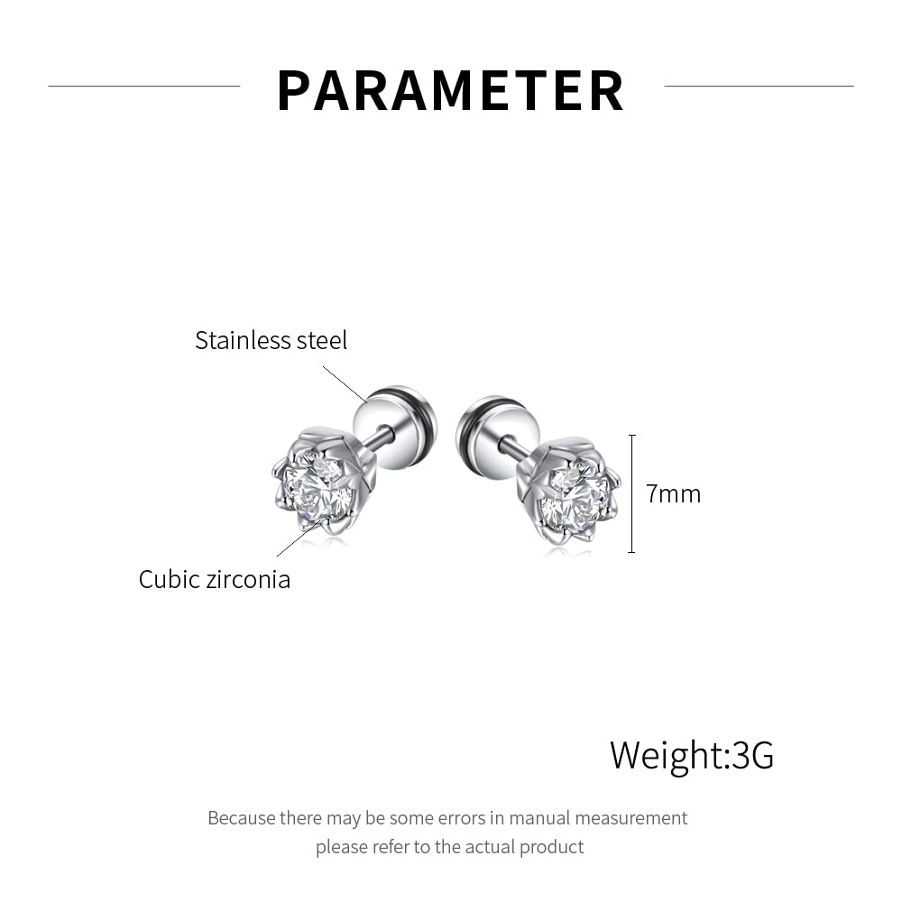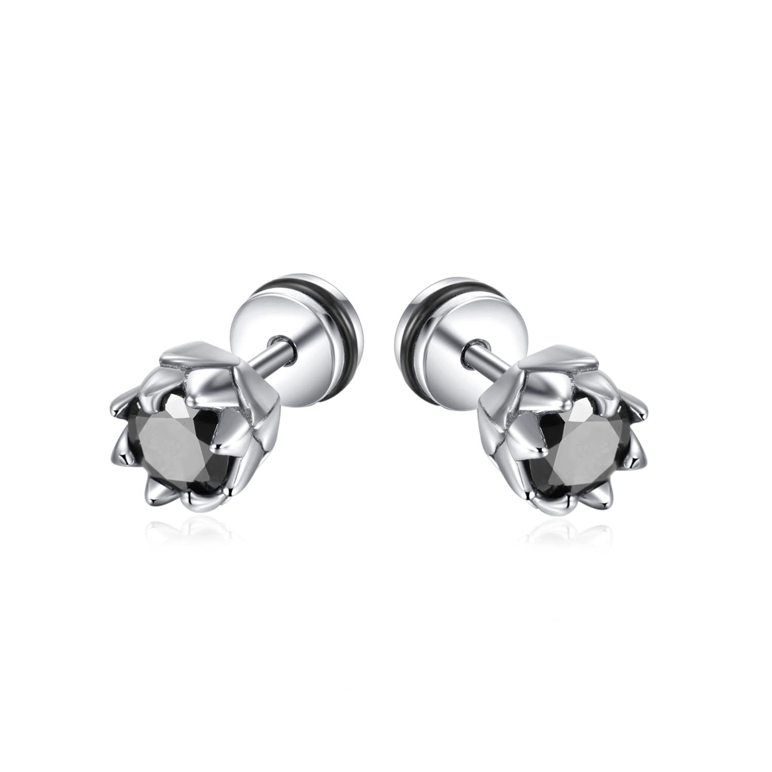 Rockyu スタッドピアス メンズ レディース|黒白ジルコニア 花モチーフ 金属アレルギー対応