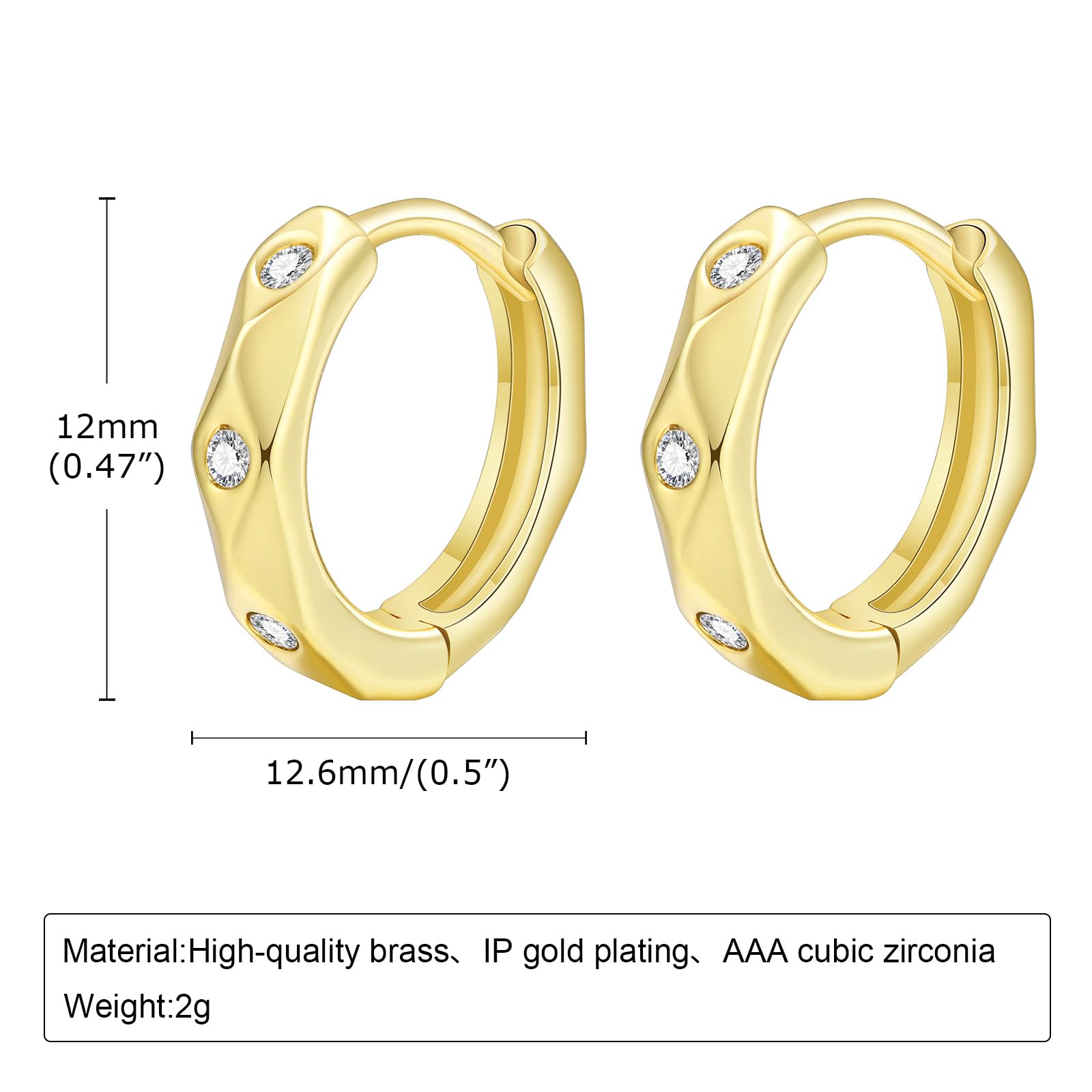 上品な輝きを放つゴールドフープピアス。高品質真鍮にIPゴールドメッキを施し、AAAグレードのキュービックジルコニアを贅沢にあしらったラグジュアリーなデザインです。直径12mm×幅12.6mmと小ぶりながら存在感があり、耳元に華やかさをプラスします。重さはわずか2gで軽量、長時間の着用も快適。日常使いから特別なシーンまで幅広く活躍し、シンプルながらも高級感を演出します。自分へのご褒美や大切な方へのプレゼントにも最適です。