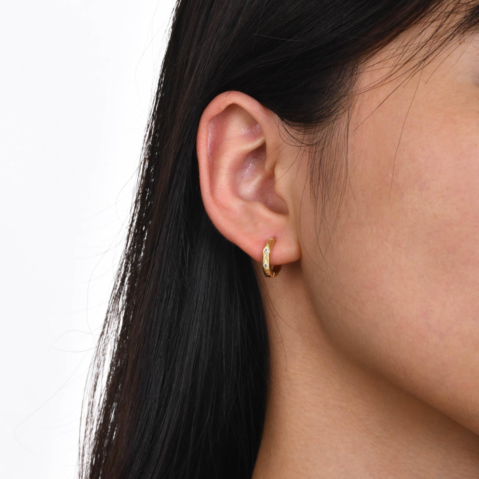 レディース ピアス ゴールド フープピアス AAAジルコニア 高品質真鍮製 IPゴールドメッキ 小ぶり 上品