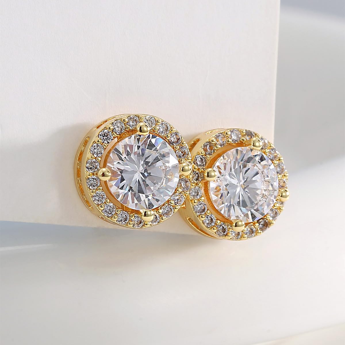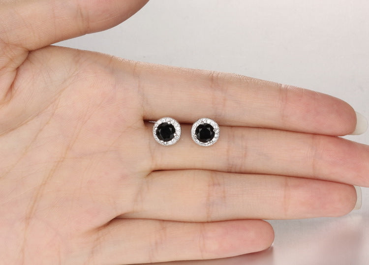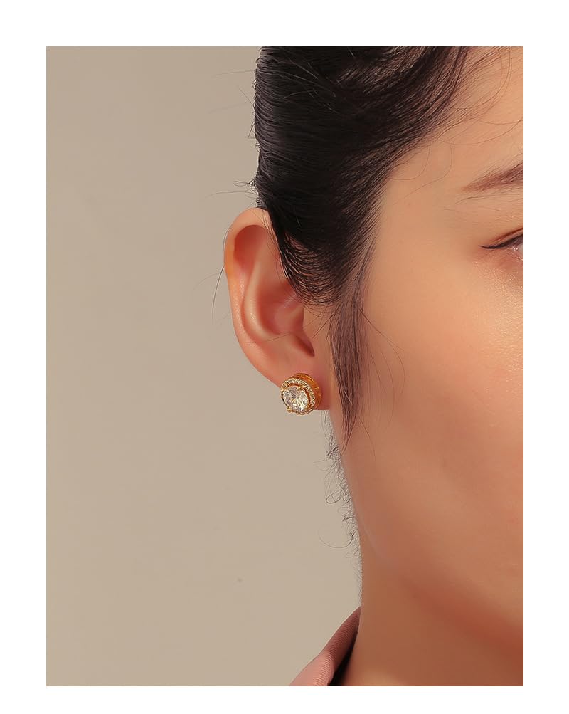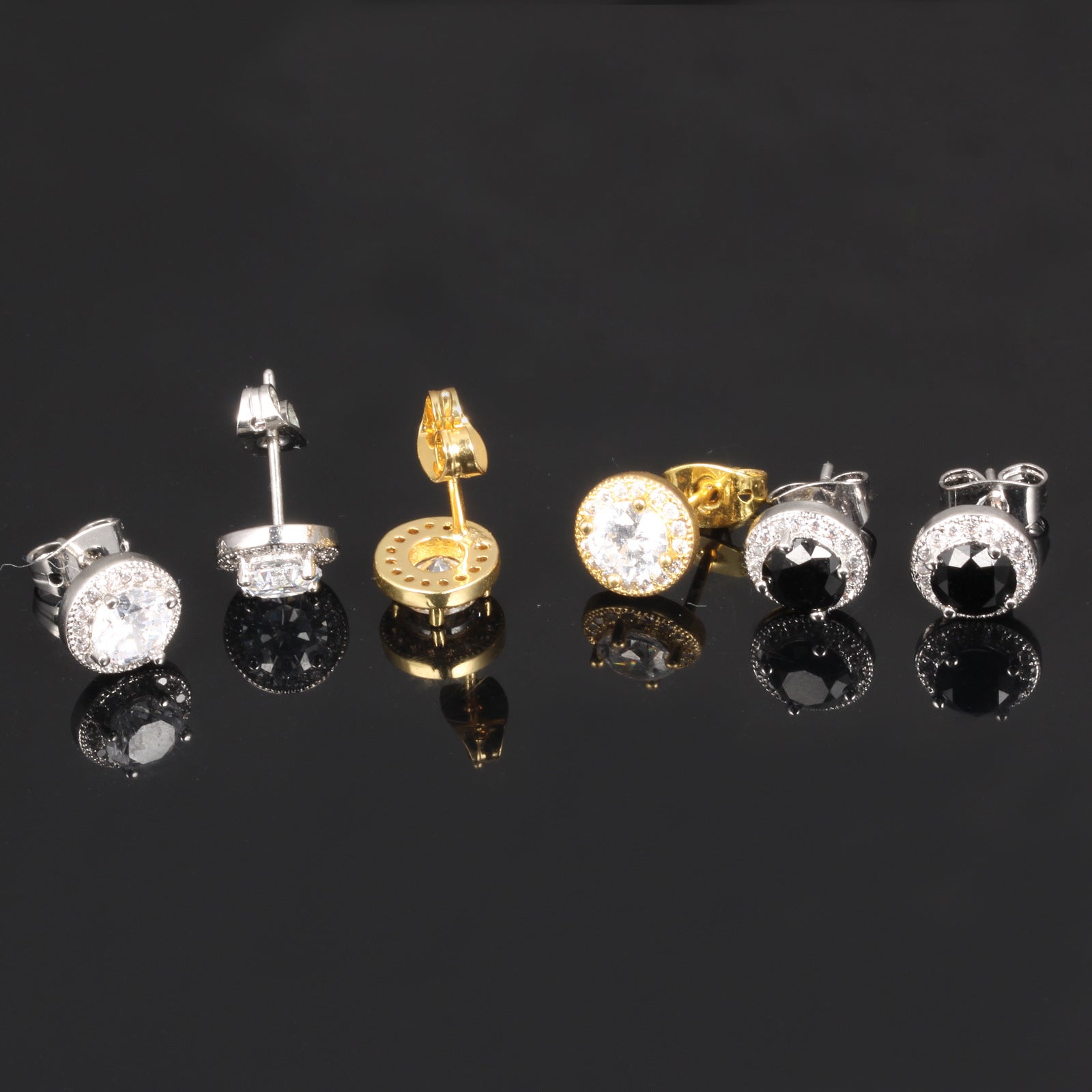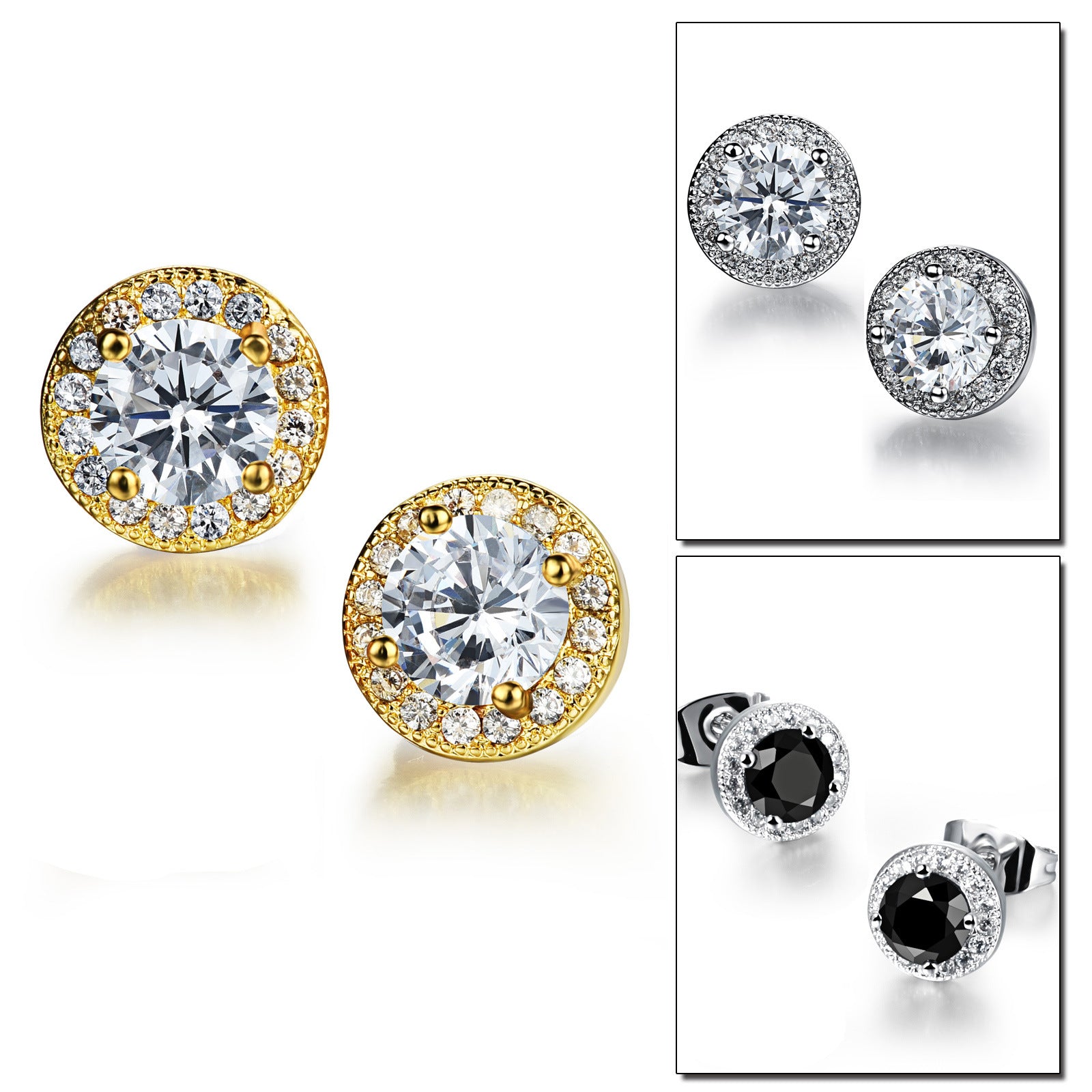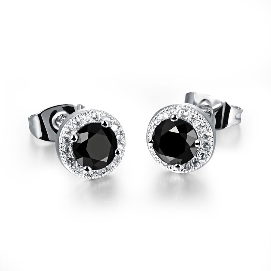 Rockyu ピアス レディース 18金仕上げ 大粒ジルコニア ゴールド&シルバー&ブラック 韓国風