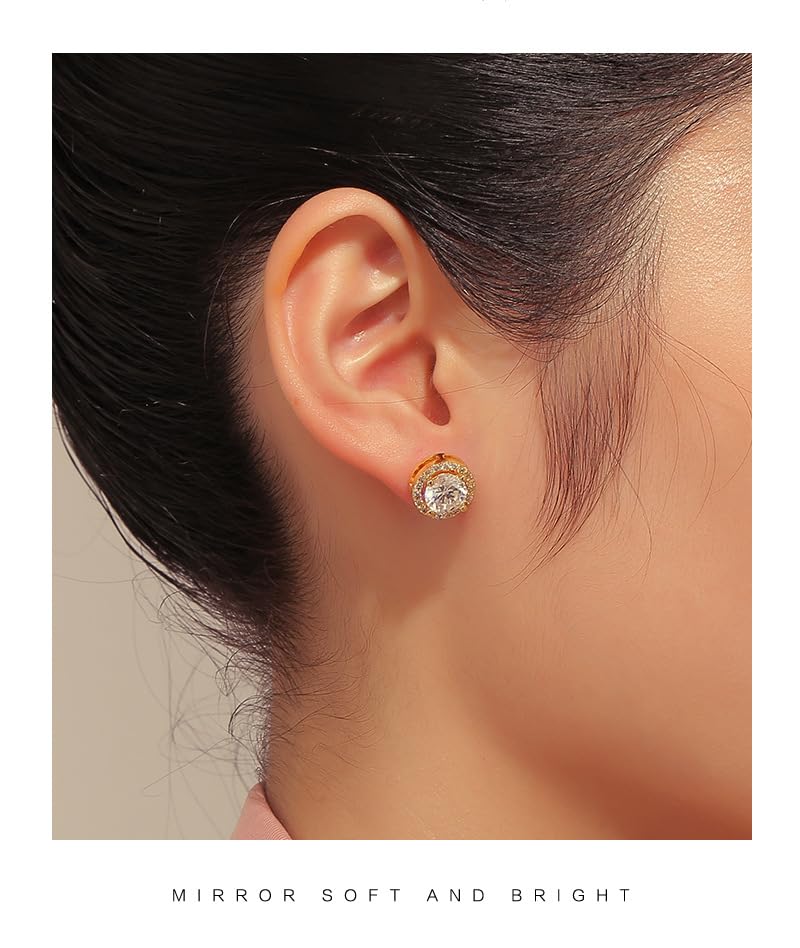 華やかさと上品さを耳元に。Rockyuの18金仕上げ大粒ジルコニアピアスは、まるで星が集まったように輝くカスミソウデザインが特徴。中央には存在感抜群の大粒ジルコニアを配し、その周囲を小粒のジルコニアがぐるりと囲み、角度によって眩い輝きを放ちます。カラーは華やかなゴールド、洗練されたシルバー、クールなブラックの3色展開で、シーンやファッションに合わせて選択可能。直径約1.1cmの程よいサイズ感と、軽やかな4.3gの重さで長時間でも快適。韓国風のモダンなエッセンスを取り入れつつ、母の日や恋人の日、誕生日の贈り物にもぴったりなジュエリーです。Rockyuならではの上質な輝きで、日常にも特別な日にも華を添えます。
