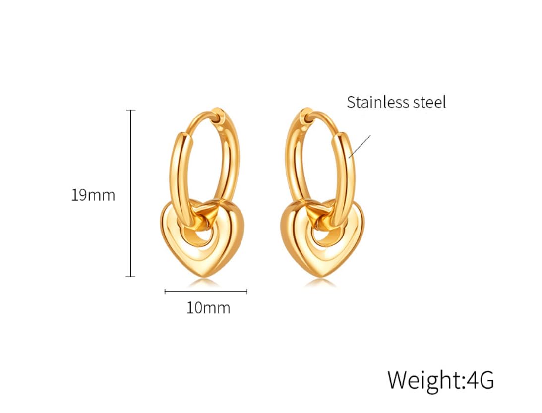 ハート部分が揺れるたびに女性らしさを演出し、カジュアルからフォーマルまで幅広いシーンにマッチします。サイズは2種類(22mm×15mm/重さ9g、19mm×10mm/重さ4g)から選べ、ペア使いや片耳使いも可能。