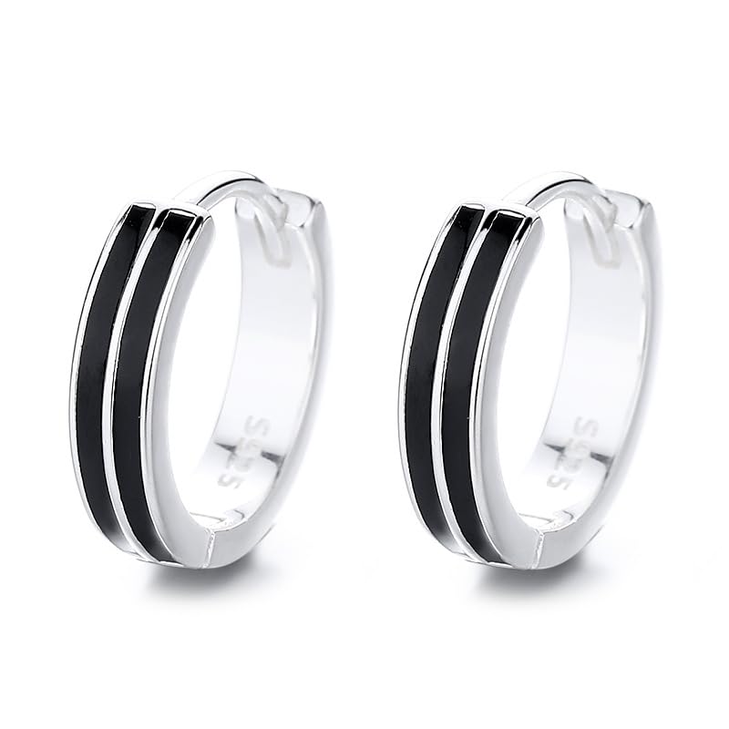 Rockyu シルバー925 ダブルブラックライン フープピアス シンプルモダン 男女兼用