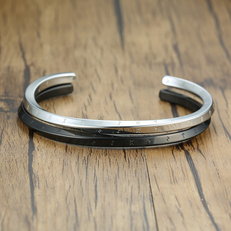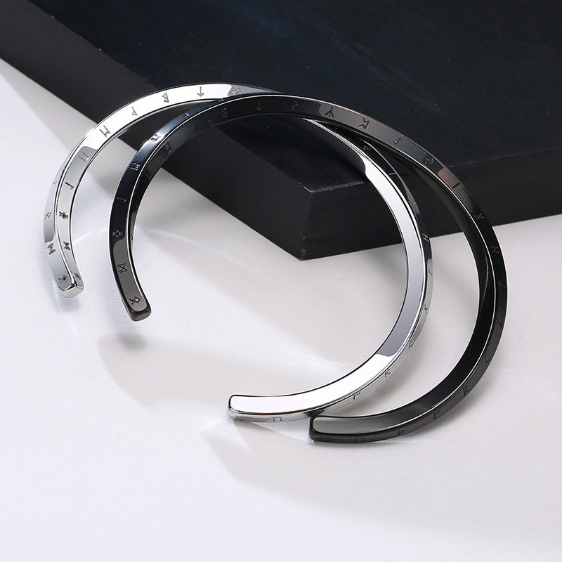 Rockyu ブレスレット メンズ モービウスデザイン バイキング符号 ステンレス オープン C型