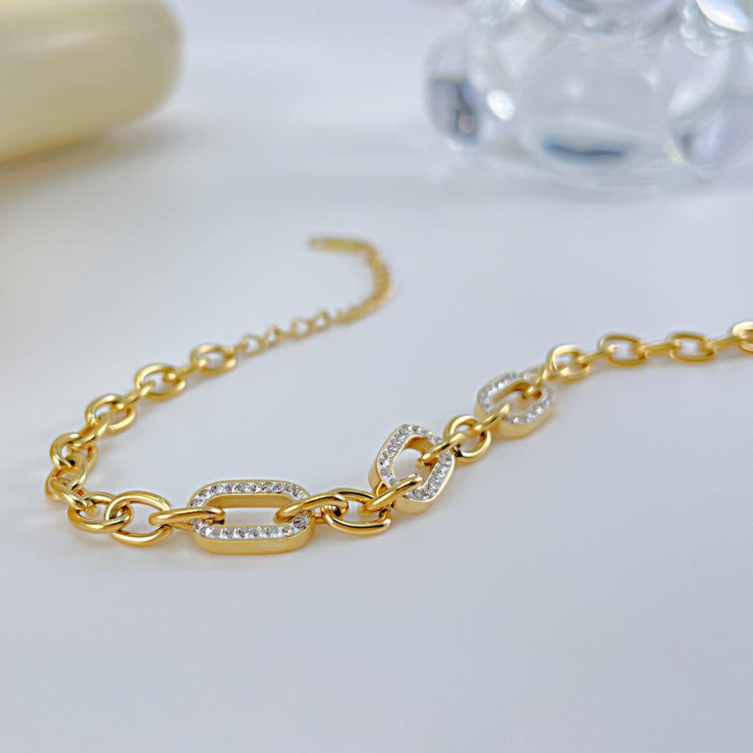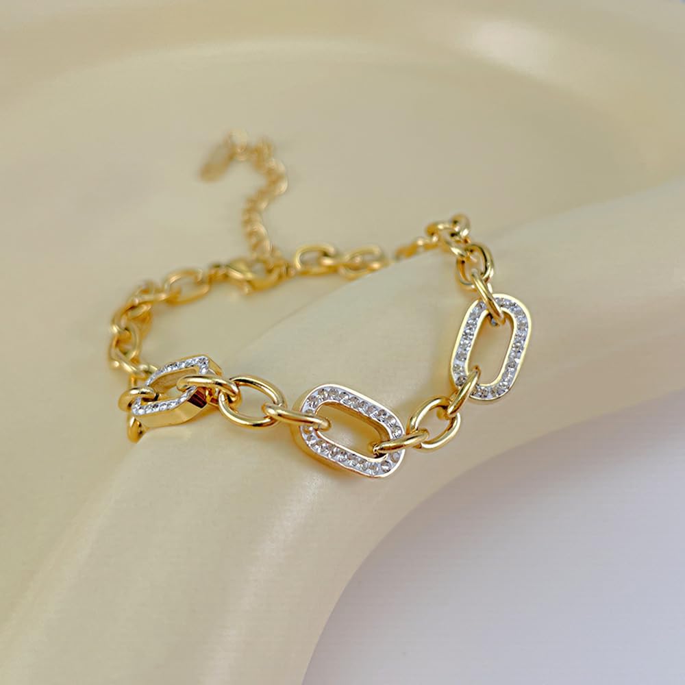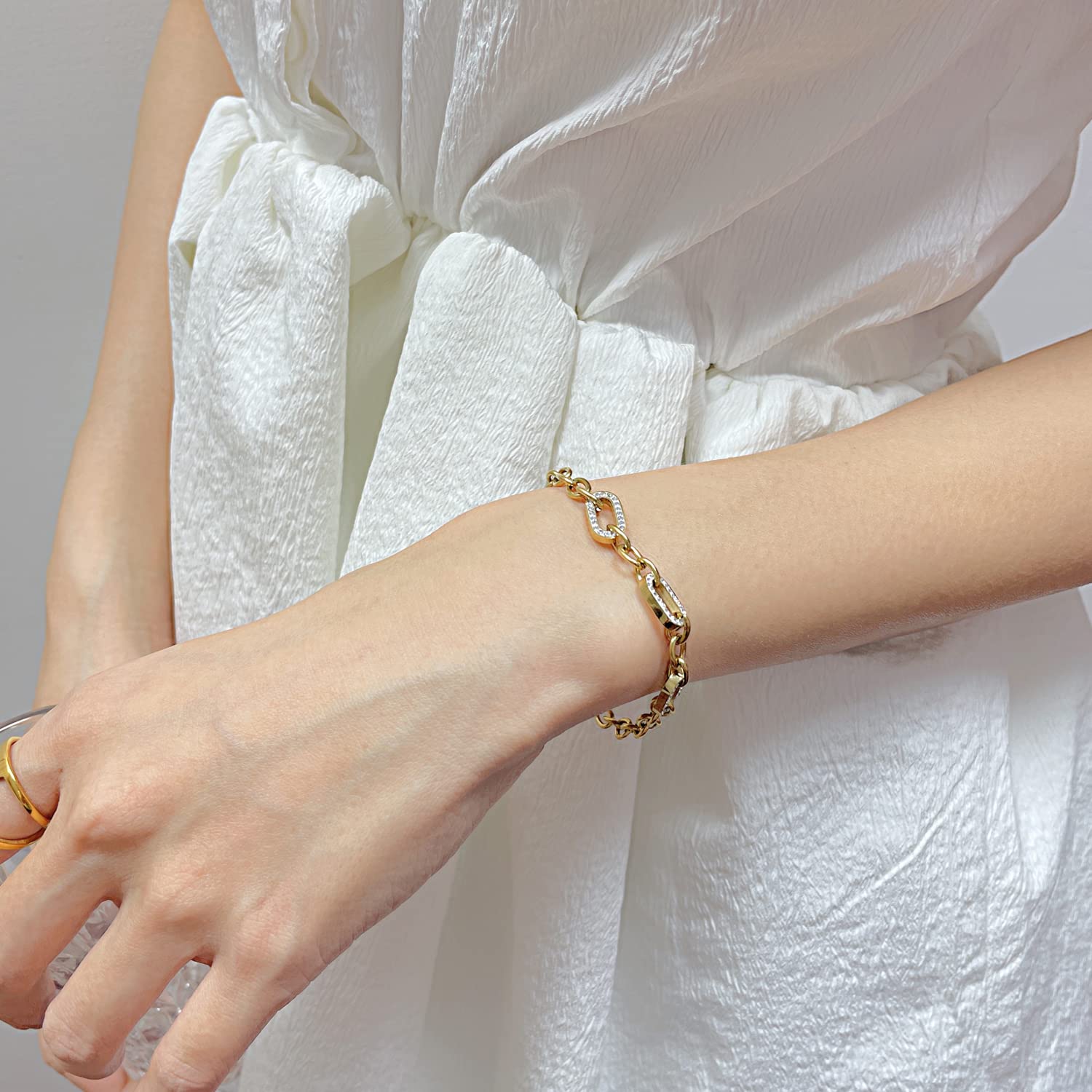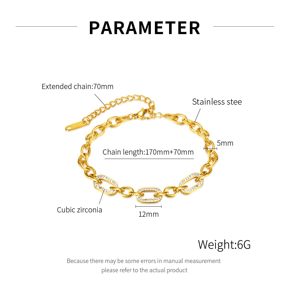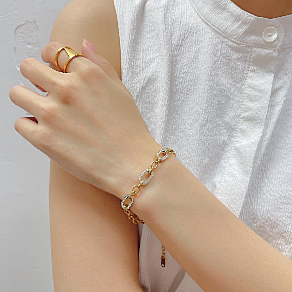 Rockyu ゴールドジルコニアリンクブレスレット ステンレス製 レディース