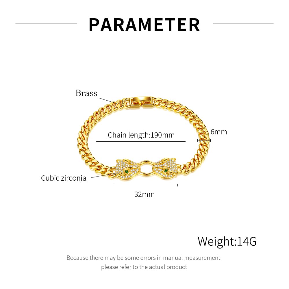 腕元に猛獣のオーラをまとわせる、Rockyuのヒョウヘッドゴールドブレスレット。輝くブラス素材にジルコニアを贅沢に敷き詰めたヒョウの頭が、都会的な強さと洗練を演出します。幅6mmの喜平チェーンはしっかりとした存在感がありながらも、190mmの長さで女性の手首にしなやかにフィット。軽やかな14gの着け心地で、一日中快適に身に着けられます。光を受けてキラリと光るその姿は、あなたの魅力を引き立てるだけでなく、特別な日の装いにもぴったり。Rockyuが贈るこの一本で、手首から放つラグジュアリーな輝きを楽しんでください。