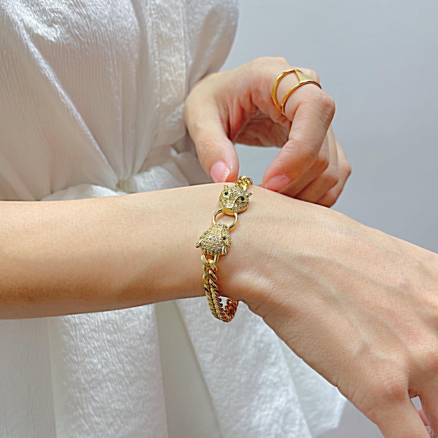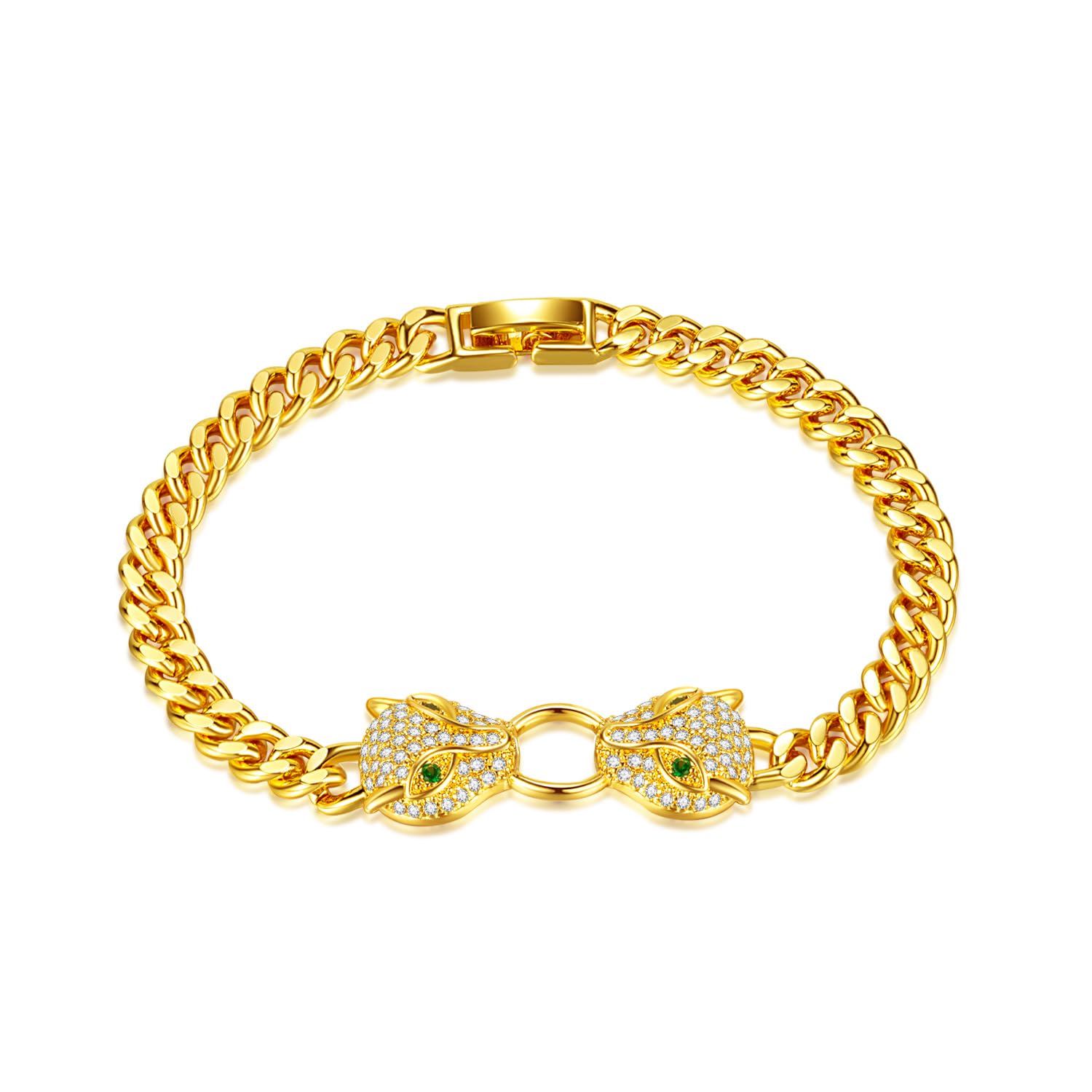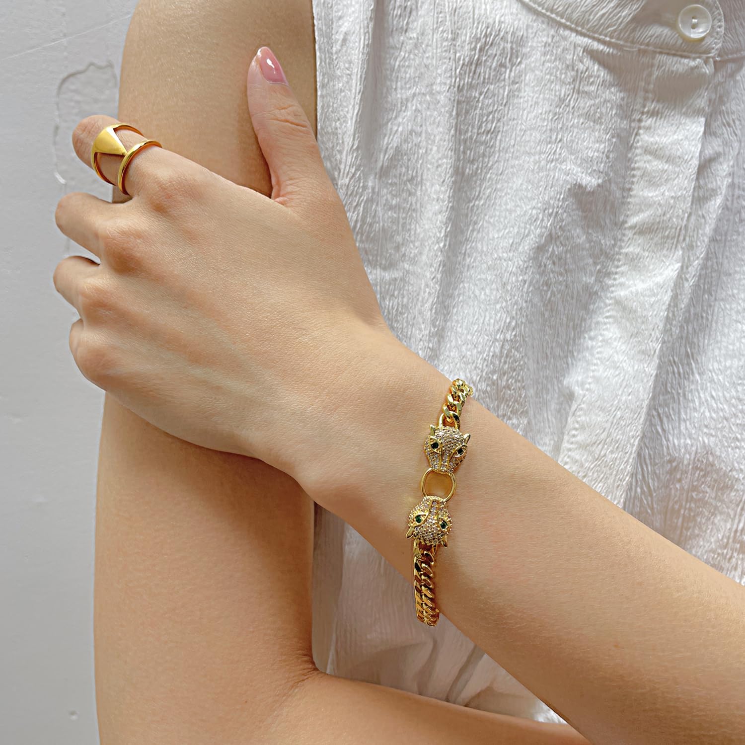 Rockyu ヒョウヘッド ゴールドブレスレット 喜平チェーン レディース