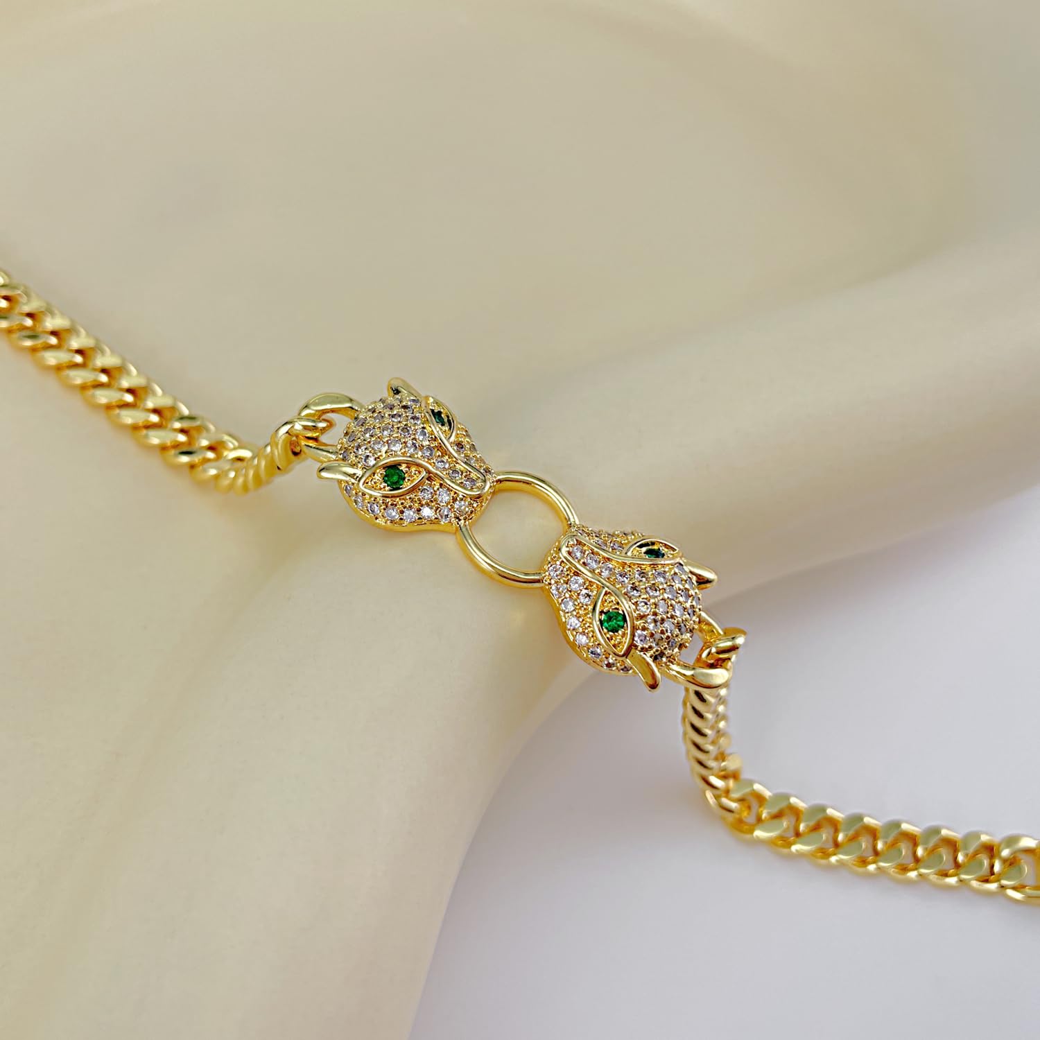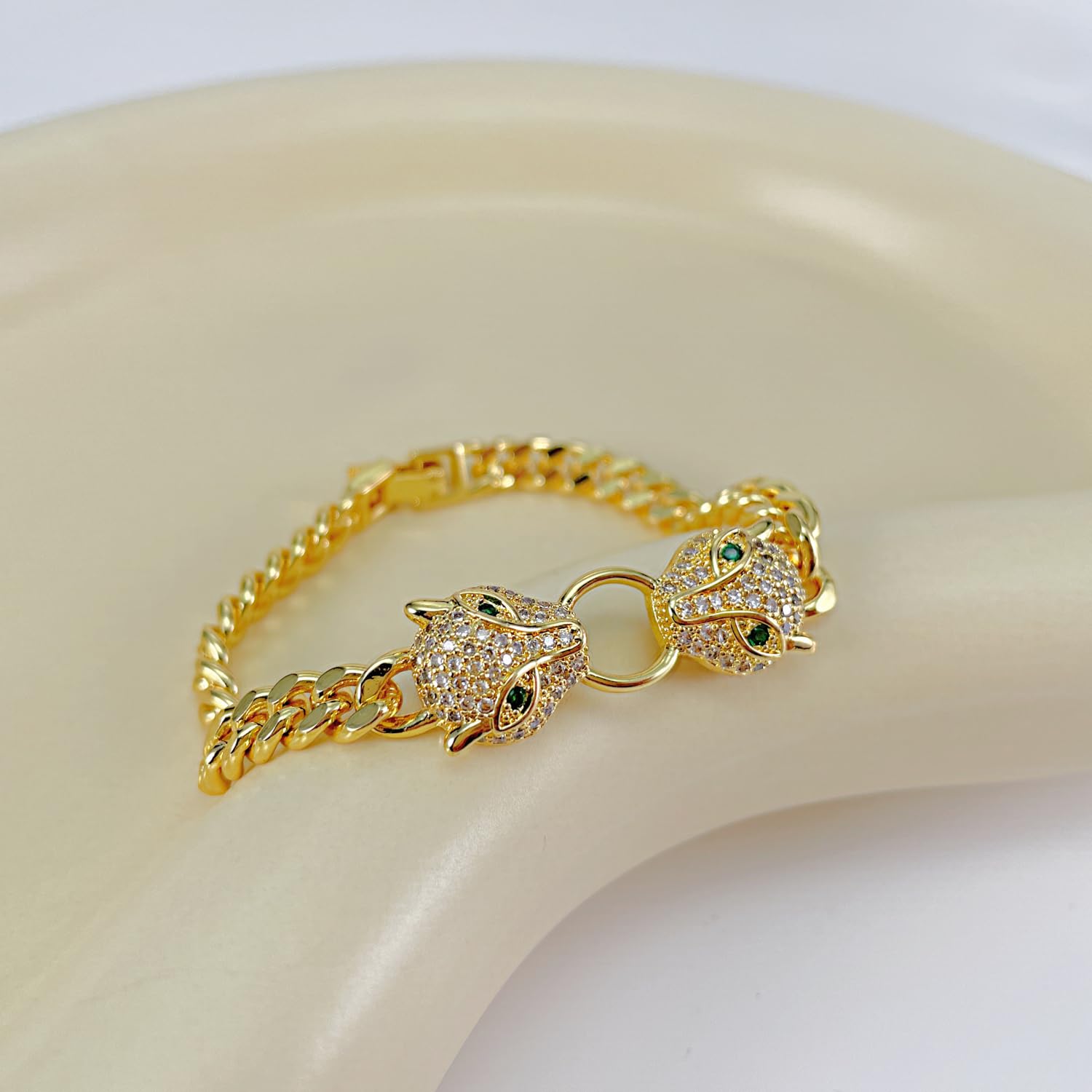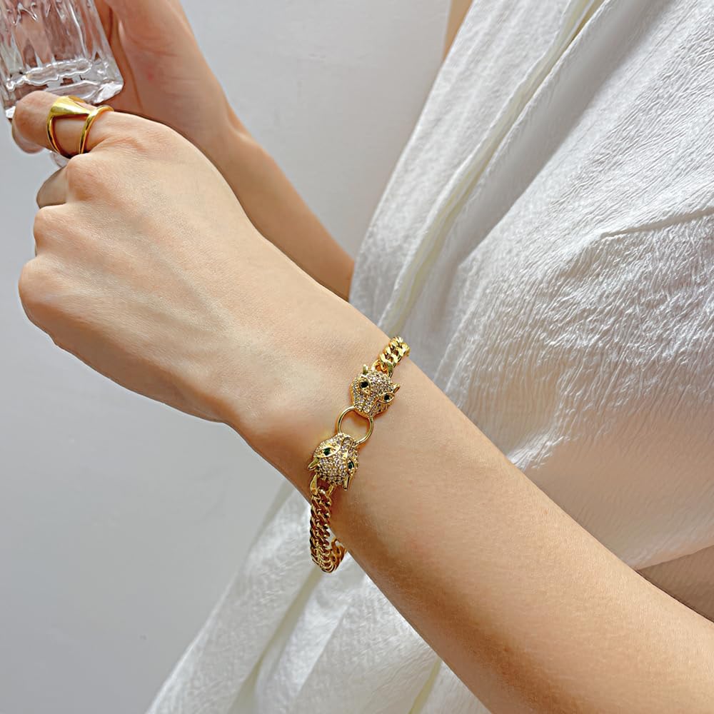 Rockyu ヒョウヘッド ゴールドブレスレット 喜平チェーン レディース