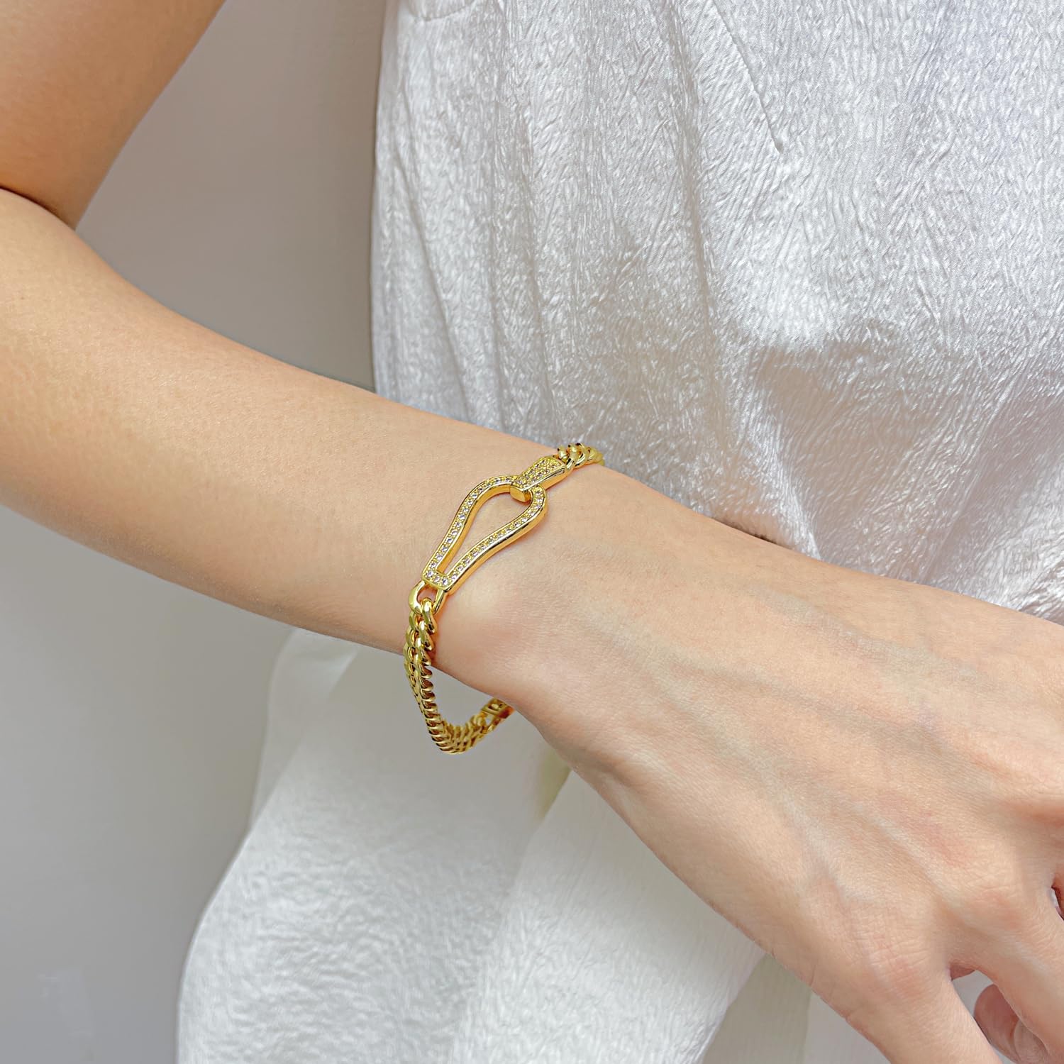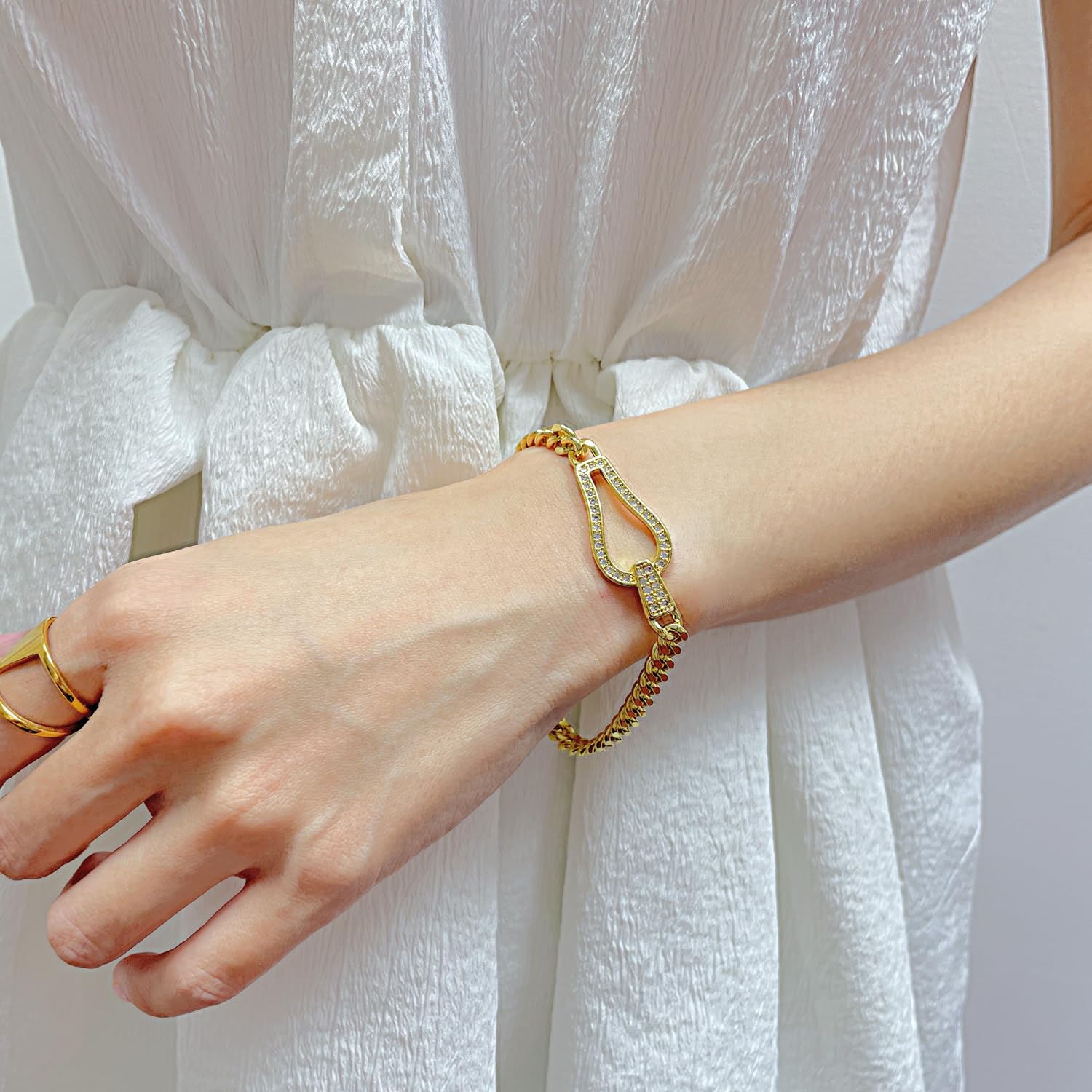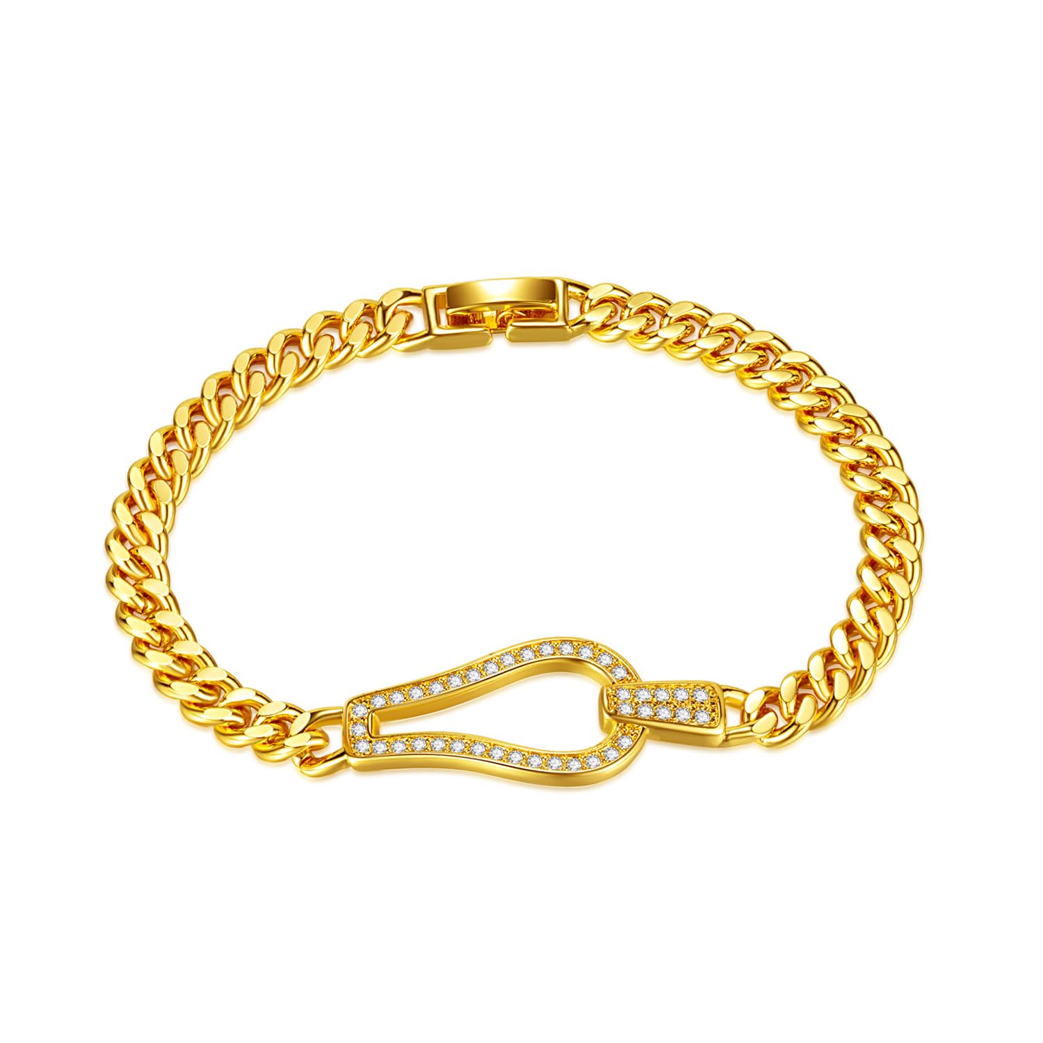ブレスレット レディース ゴールド ジルコニア 馬蹄モチーフ 喜平チェーン