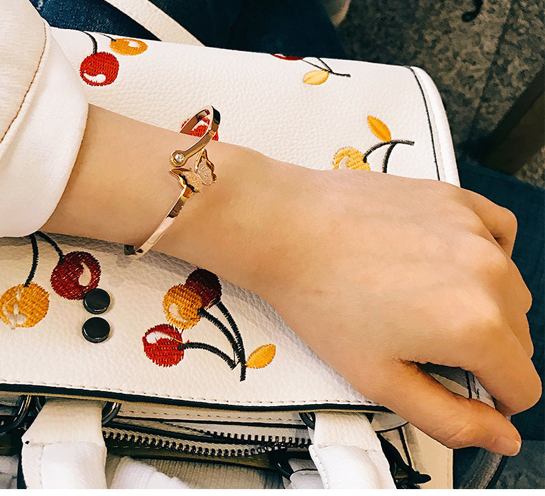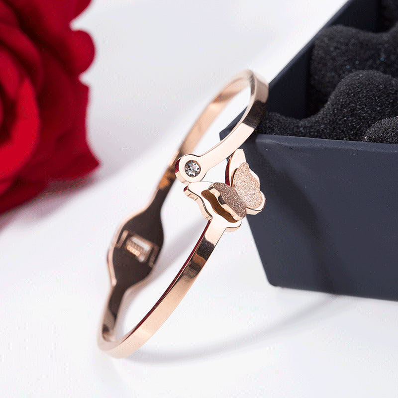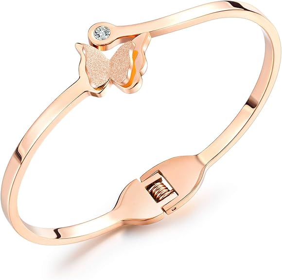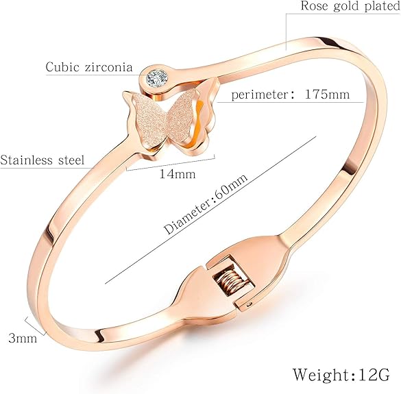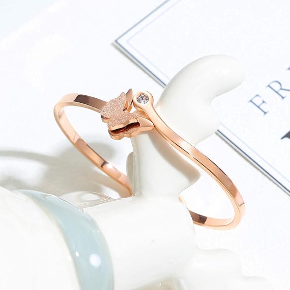 Rockyu ブレスレット レディース ピンクゴールド 蝶バングル ジルコニア付き チタン製 キラキラアクセサリー