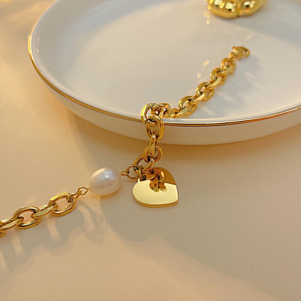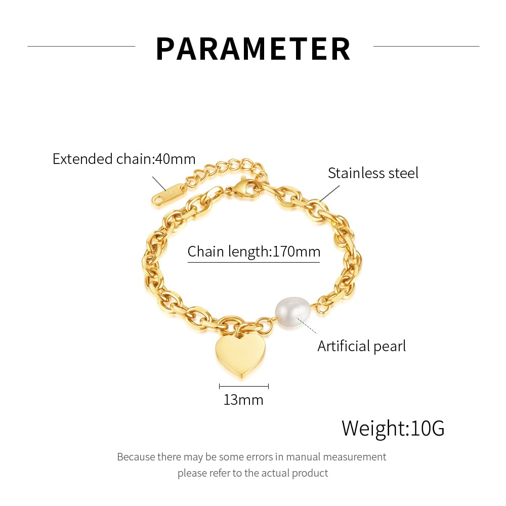 ブレスレット レディース ブランド シルバー ゴールド 真珠 ハートブレスレット パール 心型 ペンダント あずきチェーン 太め 調整可能 ステンレス 金属アレルギー対応 おしゃれ 誕生日 プレゼント アクセサリー