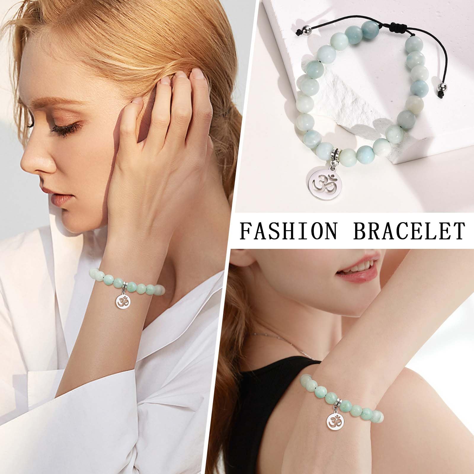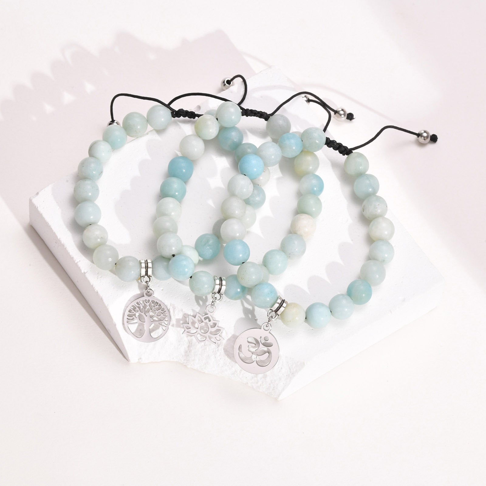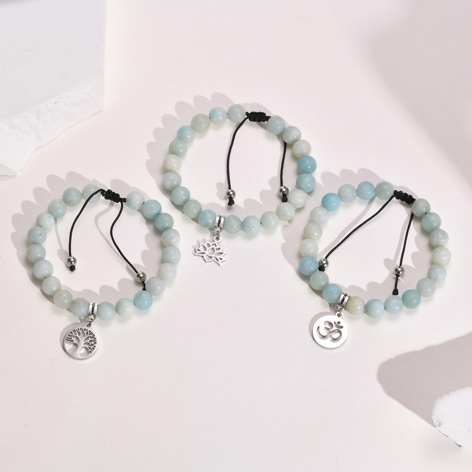 Rockyu レディース 天然石ブレスレット 蓮花・生命の樹・オームモチーフ ステンレスペンダント 金属アレルギー対応