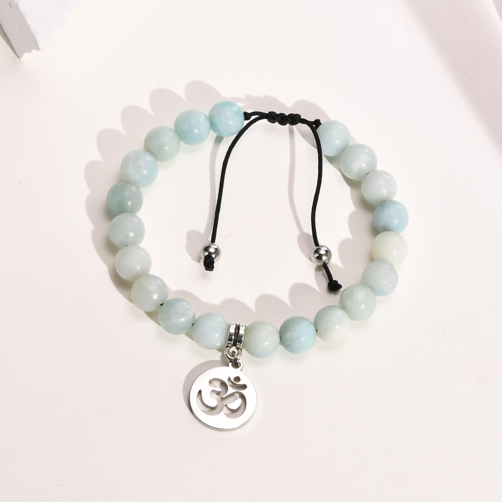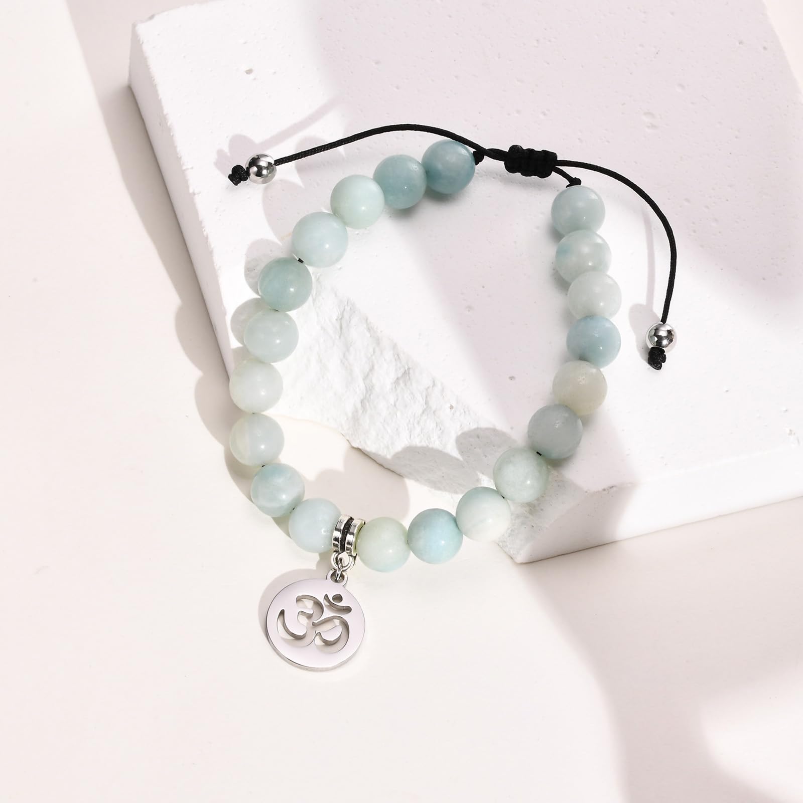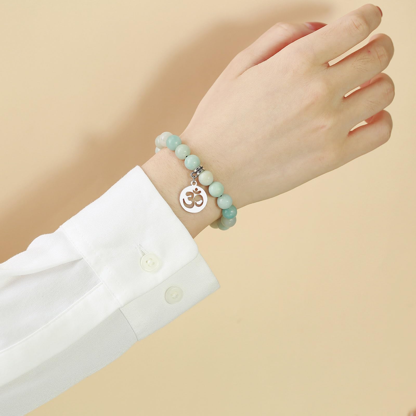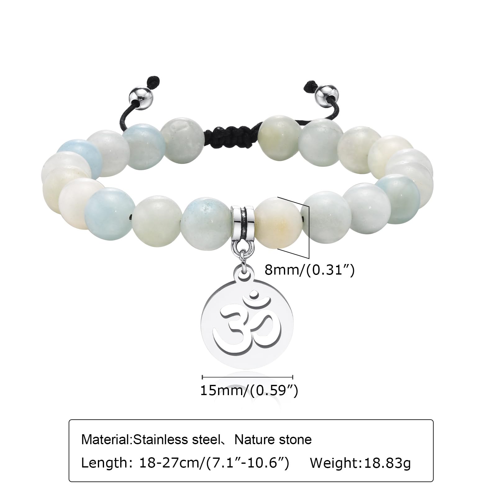Rockyu レディース 天然石ブレスレット 蓮花・生命の樹・オームモチーフ ステンレスペンダント 金属アレルギー対応