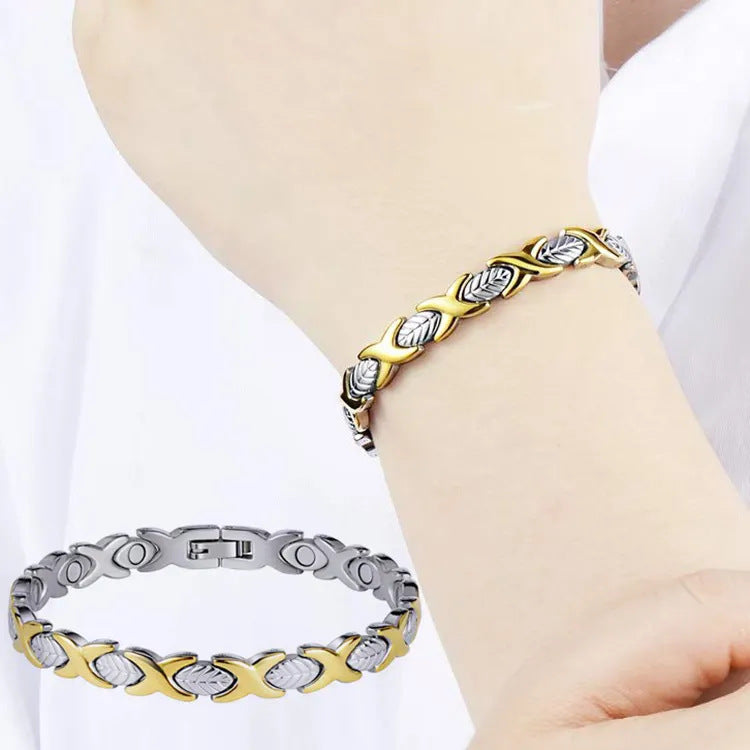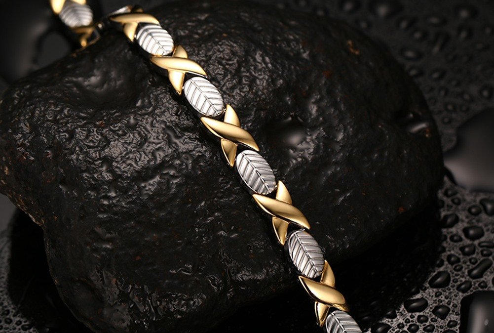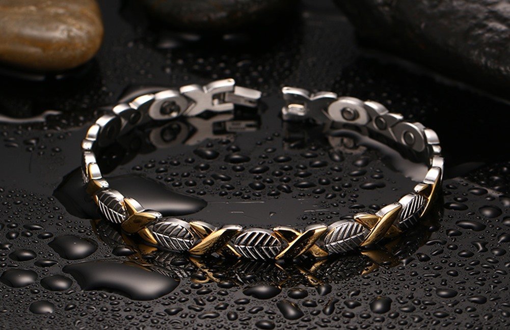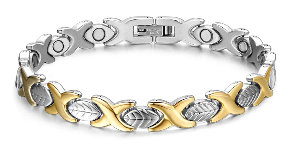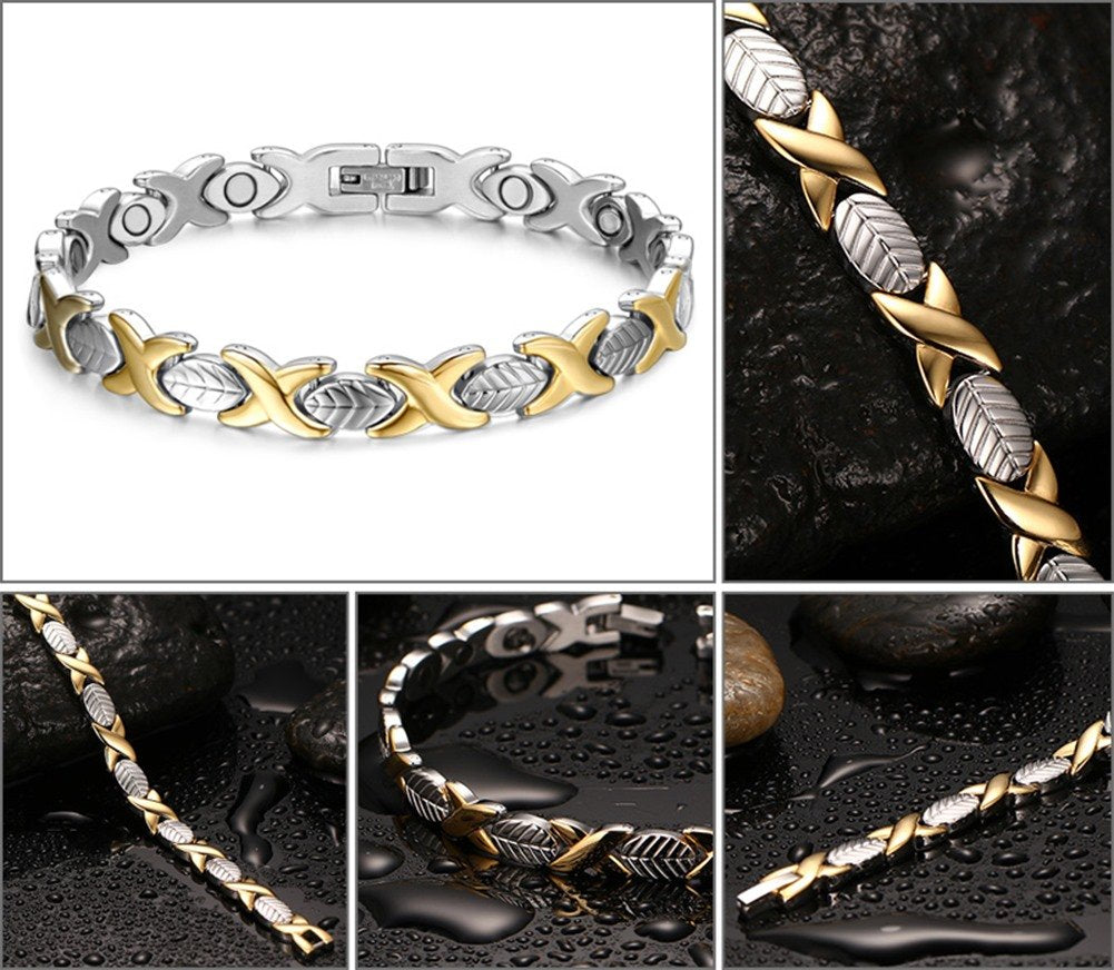 Rockyu ブレスレット レディース 磁気 シルバー&ゴールド ゲルマニウム 健康ステンレス腕輪