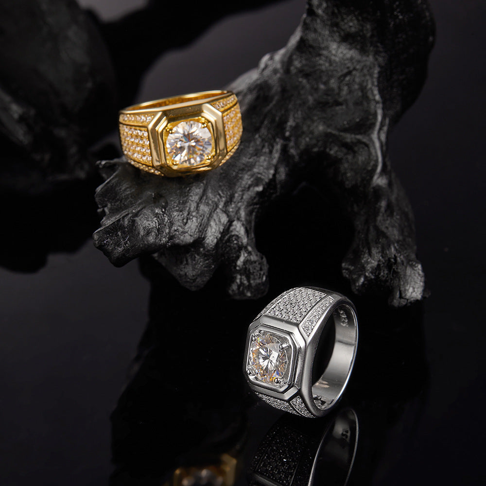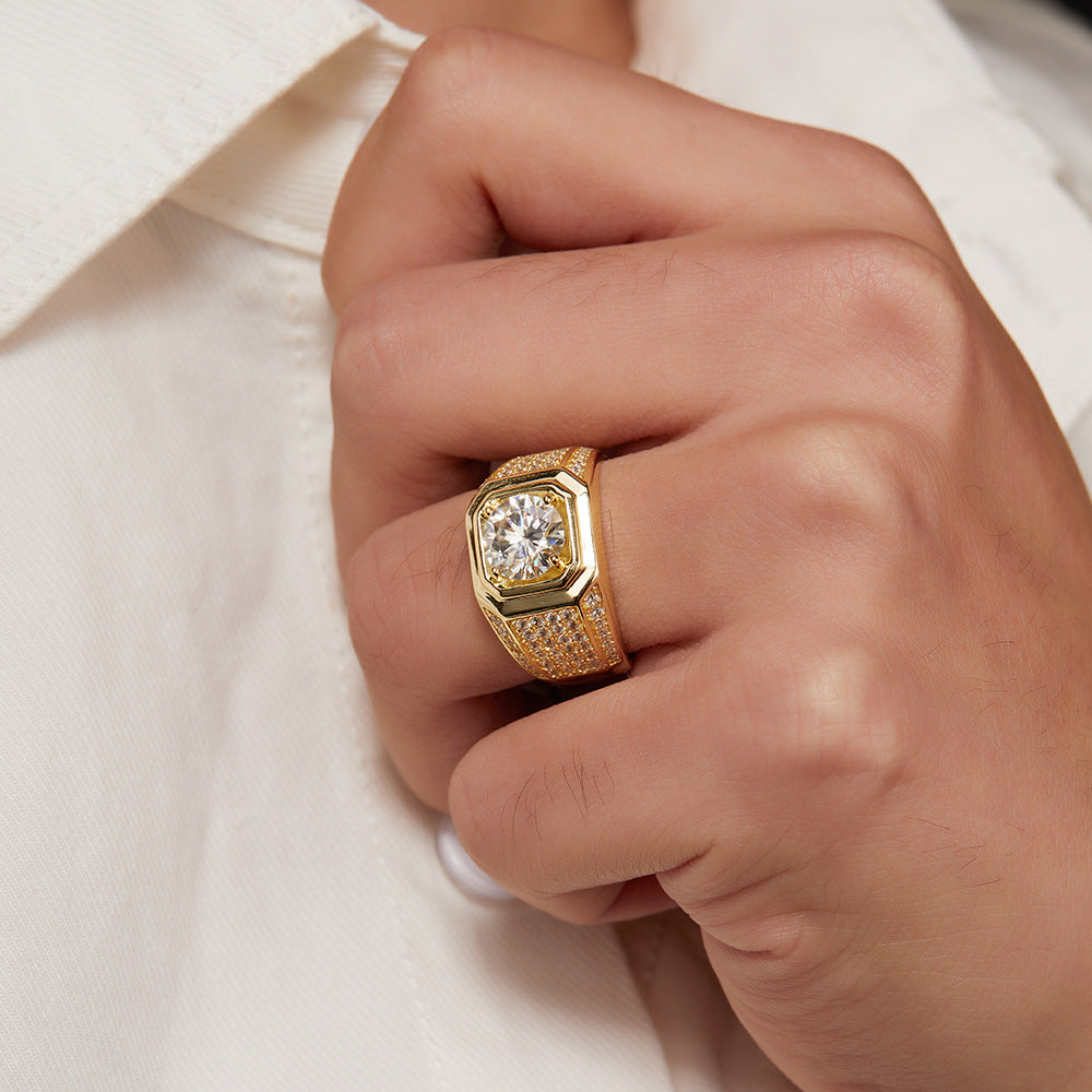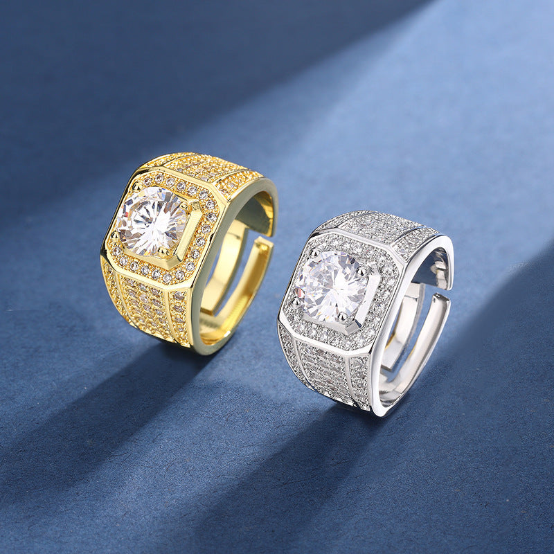 指先に、圧倒的な煌めきを。Rockyuのメンズリングは、大粒のジルコニアを中央に配し、ゴールドまたはシルバーのフレームに細やかなストーンを散りばめた、まさに“主役級”の存在感。デザイン全体にラグジュアリーな雰囲気が漂い、ひと目でセンスと格の違いを印象づけます。