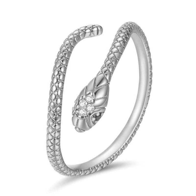 Rockyu スネークリング レディース フリーサイズ シルバー925 蛇指輪 4色展開 金属アレルギー対応