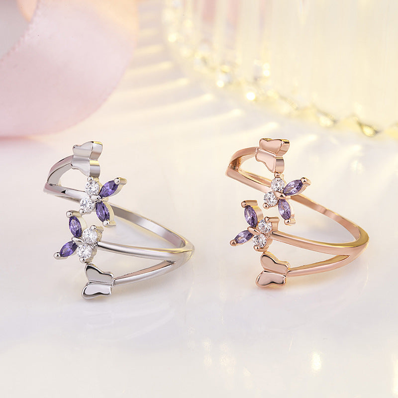 指輪 レディース 蝶モチーフ ローズゴールド/シルバー フリーサイズリング アレルギー対応 かわいい ジルコニア ファッション 結婚式 記念日 プレゼント