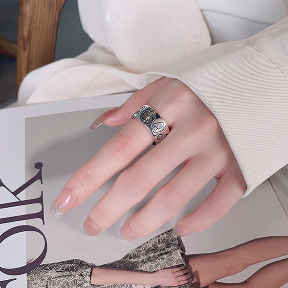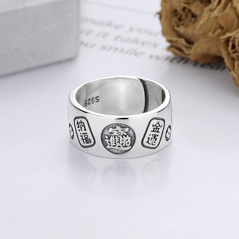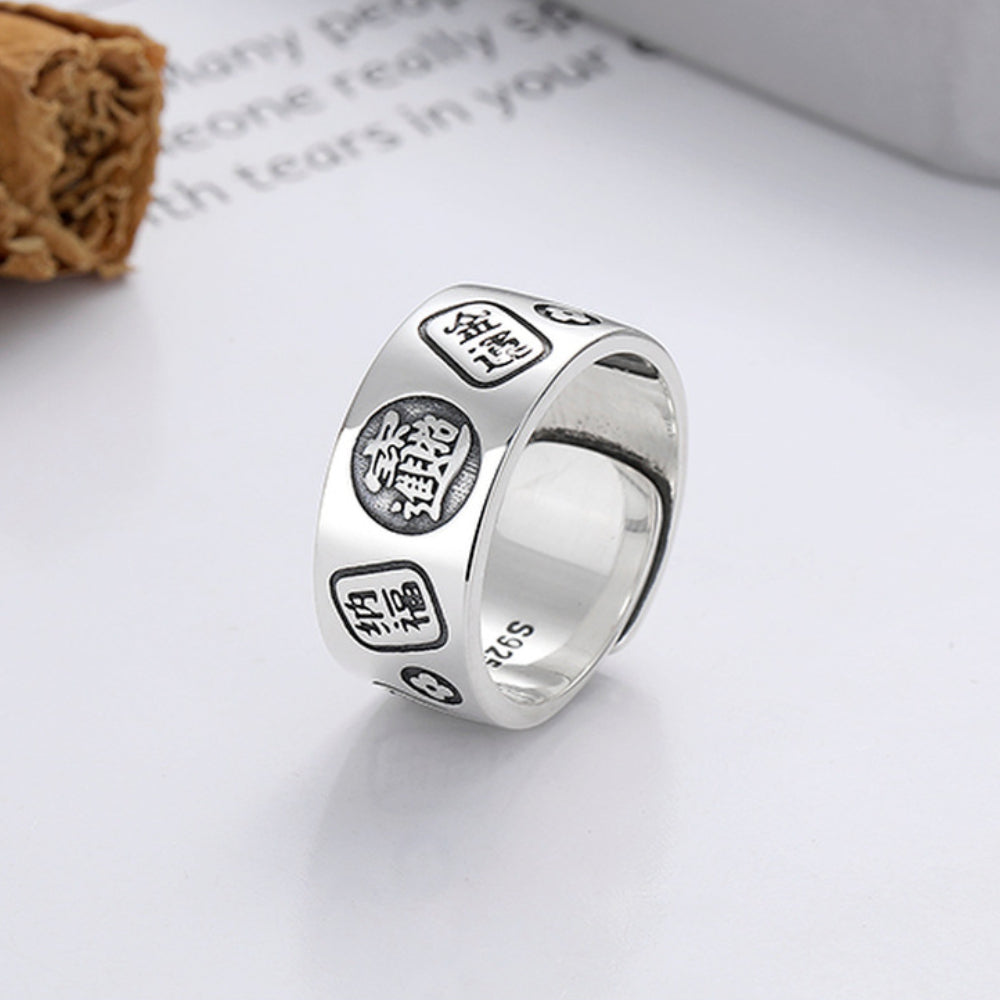 Rockyu 指輪 レディース メンズ 太め シルバー925 金運アップ リング 金属アレルギー対応 フリーサイズ 縁起物 お守り