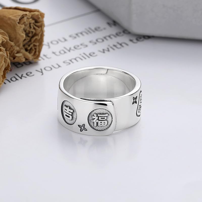 吉・福の文字を刻み込んだ、縁起の良いRockyuのシルバー925金運アップリング。シンプルながらも存在感のある太めフォルムは、指先に堂々とした印象を与えます。滑らかな内側仕上げで着け心地も良く、金属アレルギー対応だから肌にもやさしい設計。フリーサイズ仕様で調整可能なので、男女問わずお使いいただけます。財を招く、平安を願うなどの意味を込めたモチーフは、自分へのお守りとしても、大切な方への贈り物としてもぴったり。誕生日や父の日など、特別な日のギフトに選べば、気持ちのこもったプレゼントになること間違いなしです。
