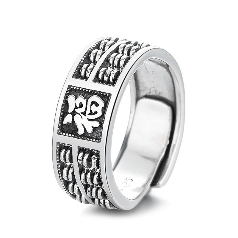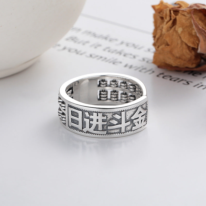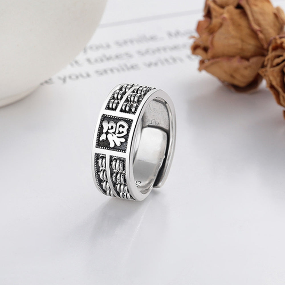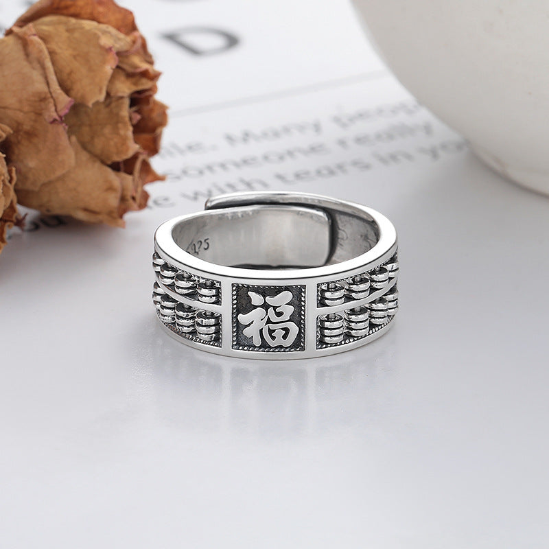 Rockyu 指輪 レディース メンズ 太め シルバー925 算盤モチーフリング フリーサイズ 金運アップ 民族風 お守り