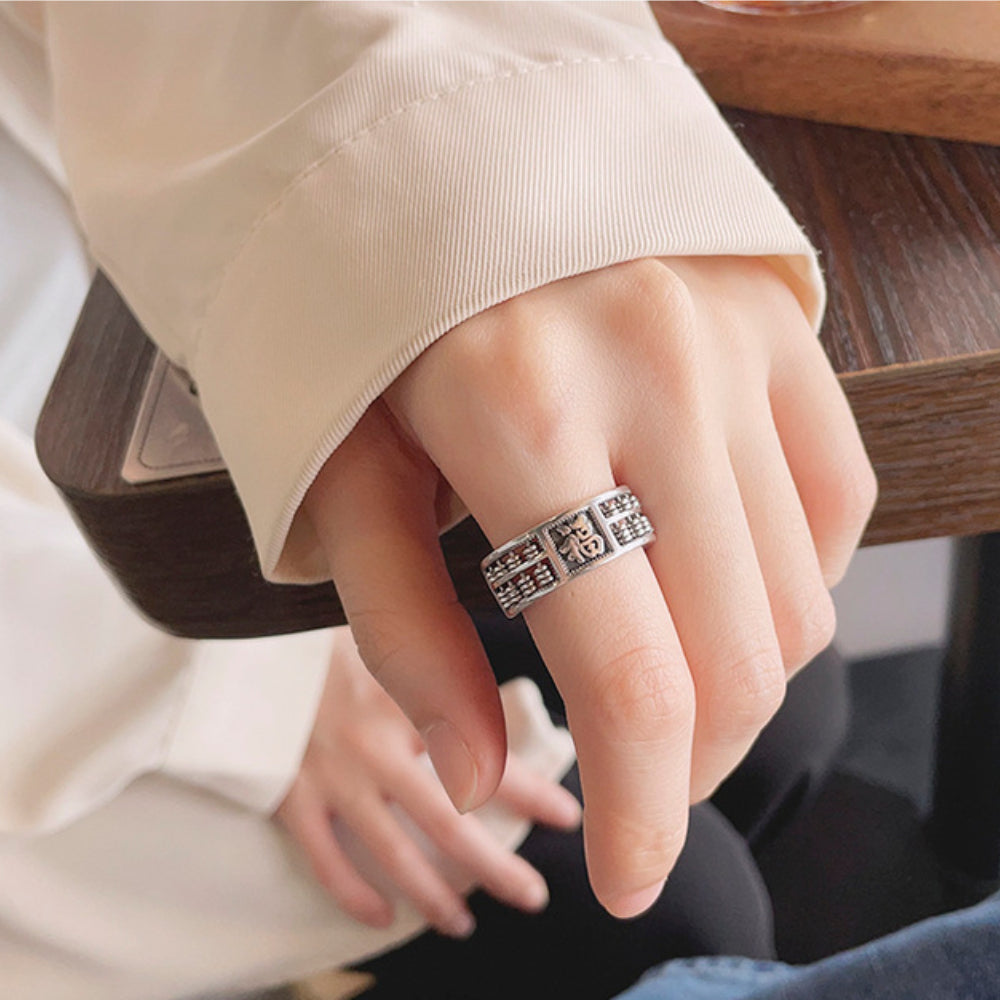 財運の象徴である算盤デザインを大胆に取り入れた、Rockyuのシルバー925算盤モチーフリング。精巧なビーズ状の彫刻が本物さながらの雰囲気を演出し、中央のモチーフがアクセントとなって指先に存在感を与えます。太めのフォルムとアンティーク風の仕上げが、民族的で味わい深い印象をプラス。フリーサイズのオープンリング仕様で、指のサイズに合わせて簡単に調整でき、男女兼用で着用可能です。金属アレルギーにも配慮したシルバー925素材を使用し、快適な着け心地を実現。金運アップや財源拡大を願うお守りとしてはもちろん、誕生日や父の日の特別なギフトにもぴったりな、個性派デザインの逸品です。