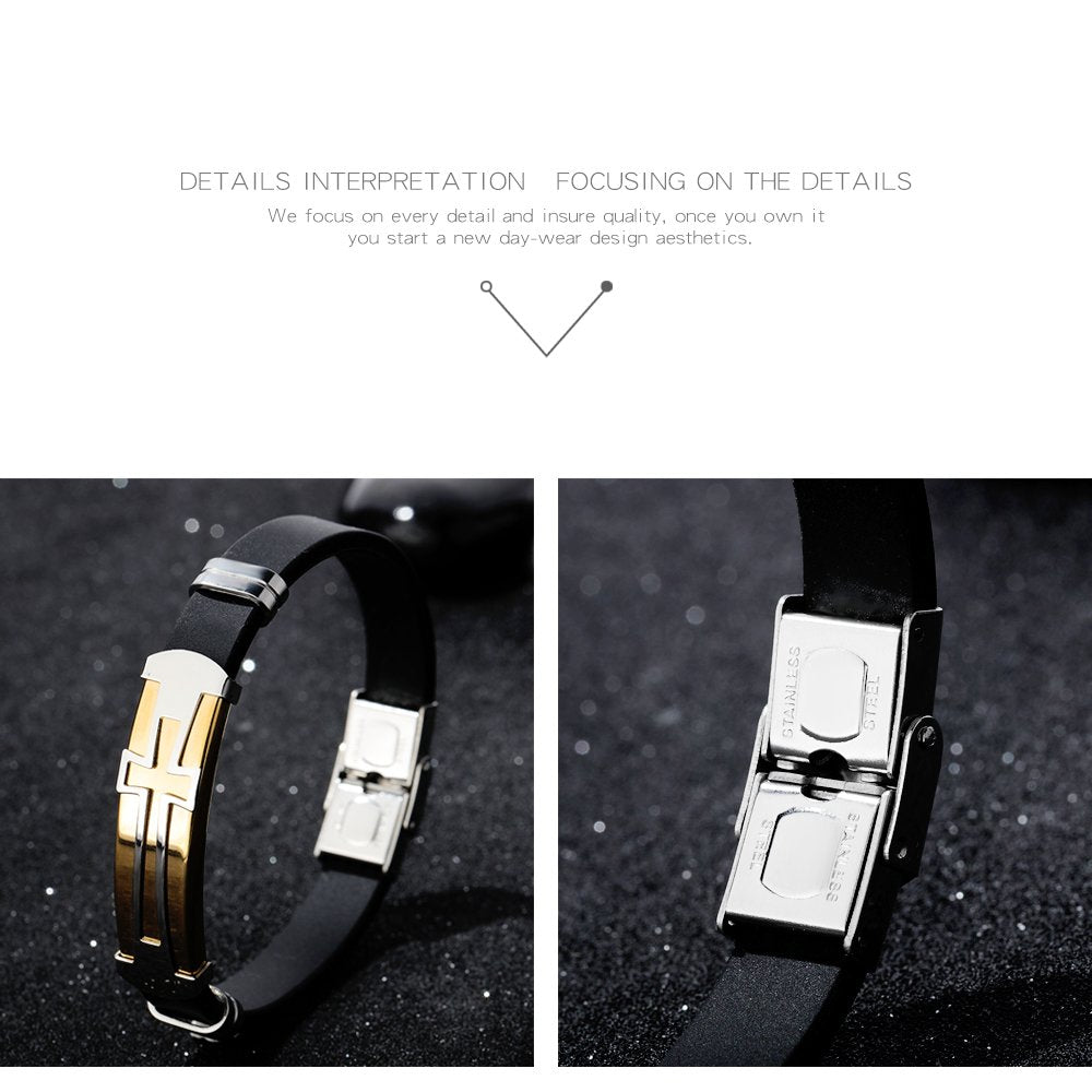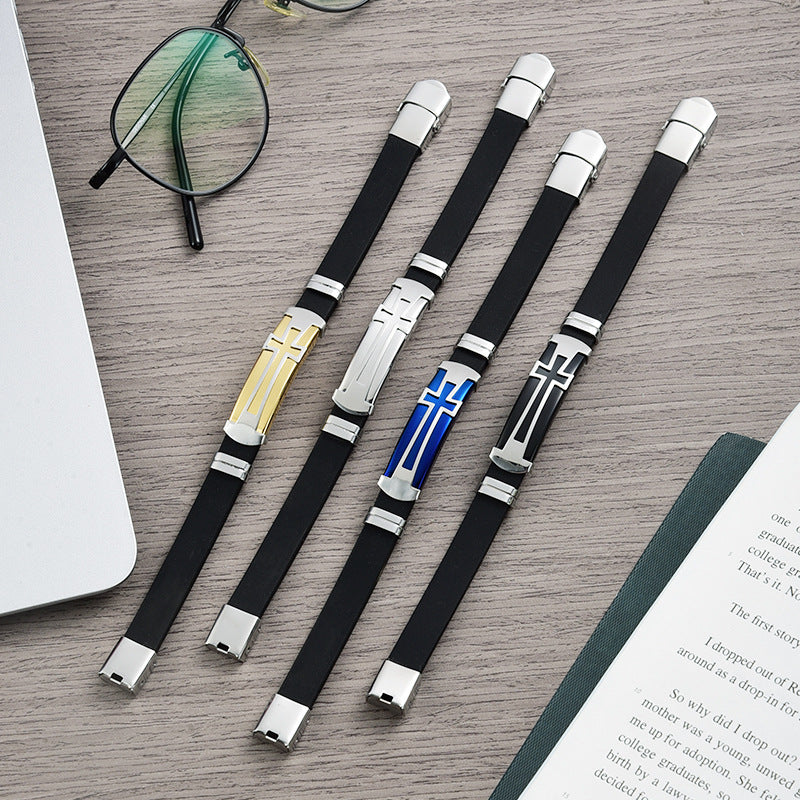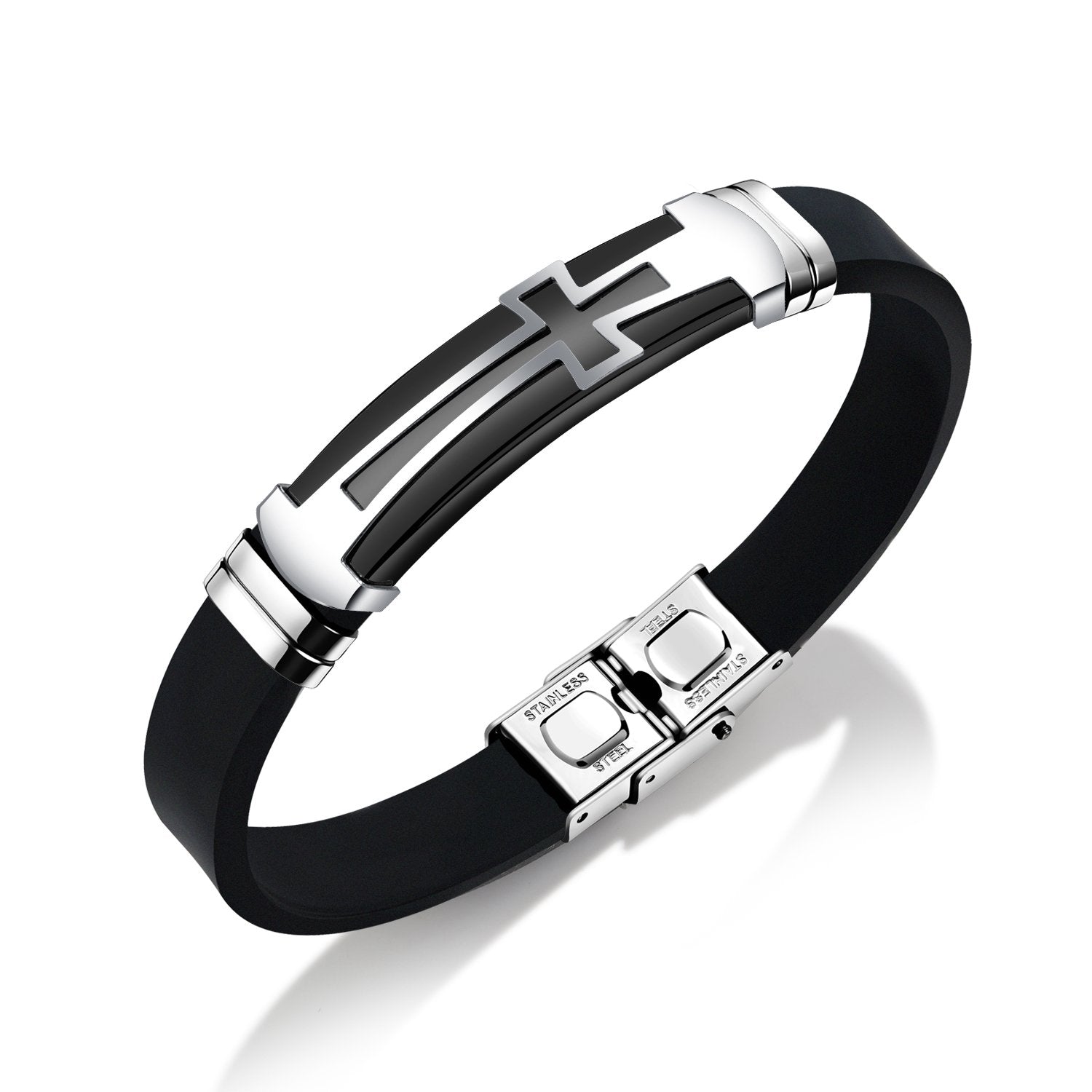 Rockyu メンズクロスブレスレット ステンレス×シリコン アジャスタブルデザイン