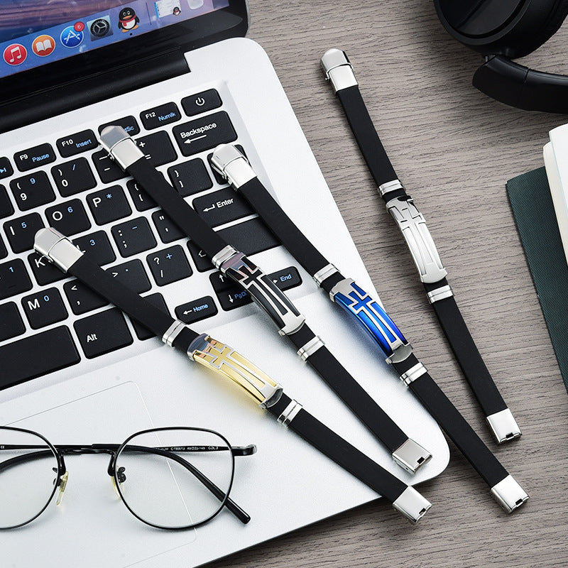 Rockyuが放つ、静かに主張する男のブレスレット。ステンレスの輝きとシリコンの滑らかさが絶妙に融合したデザインに、クロスモチーフがアクセントとして映える1本。シンプルながらも力強い存在感で、手元から男の魅力を格上げします。