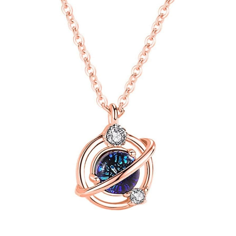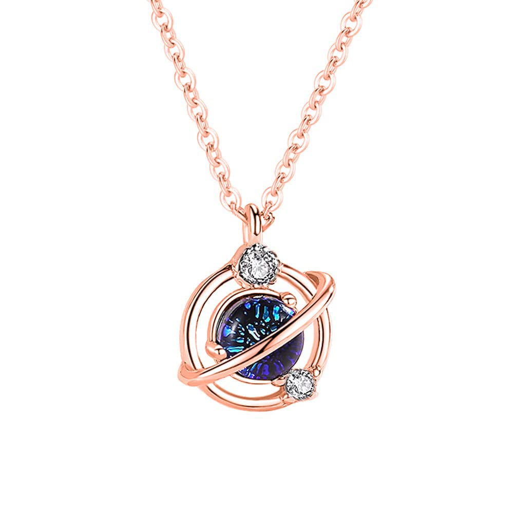 Rockyu 惑星モチーフネックレス レディース 土星風デザイン ピンクゴールド&シルバー