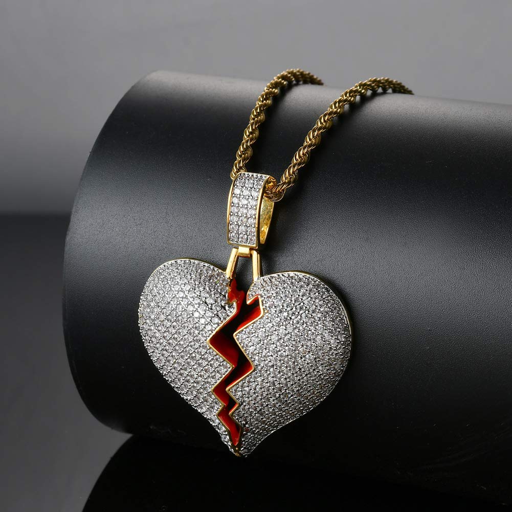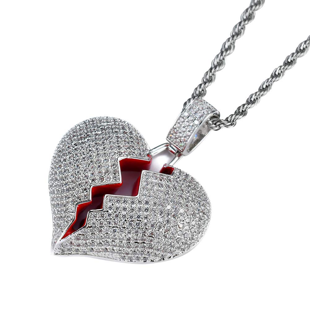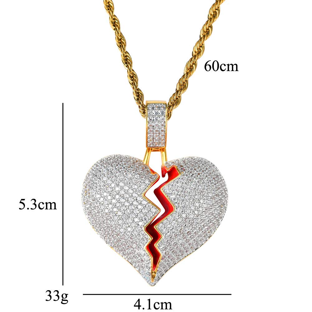 Rockyu ネックレス メンズ ハートブレイク ジルコニア シルバー ゴールド Hip Hop ペンダント