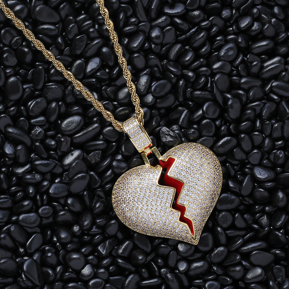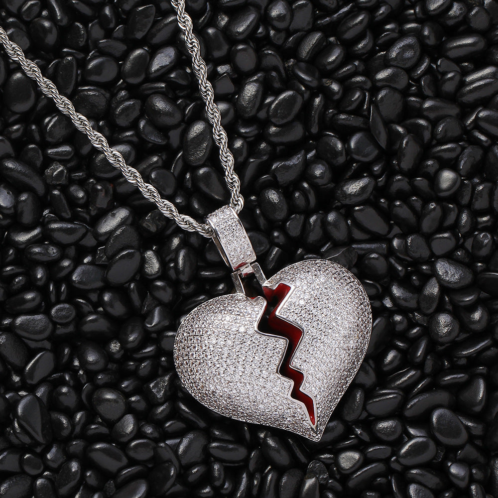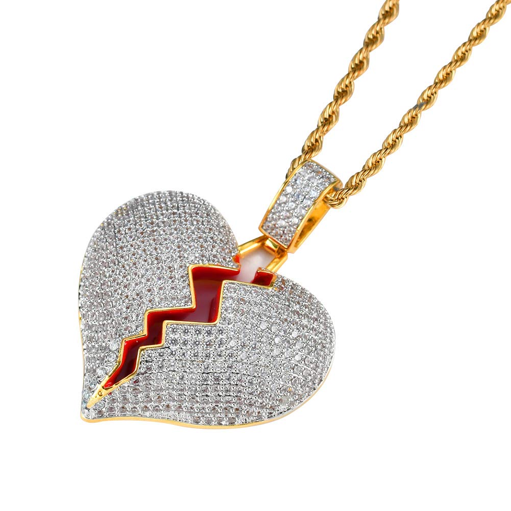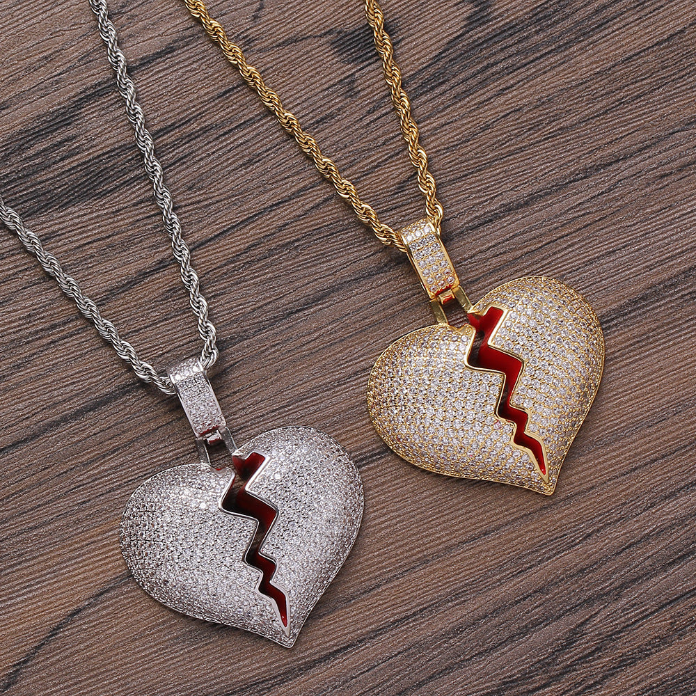Rockyu ネックレス メンズ ハートブレイク ジルコニア シルバー ゴールド Hip Hop ペンダント