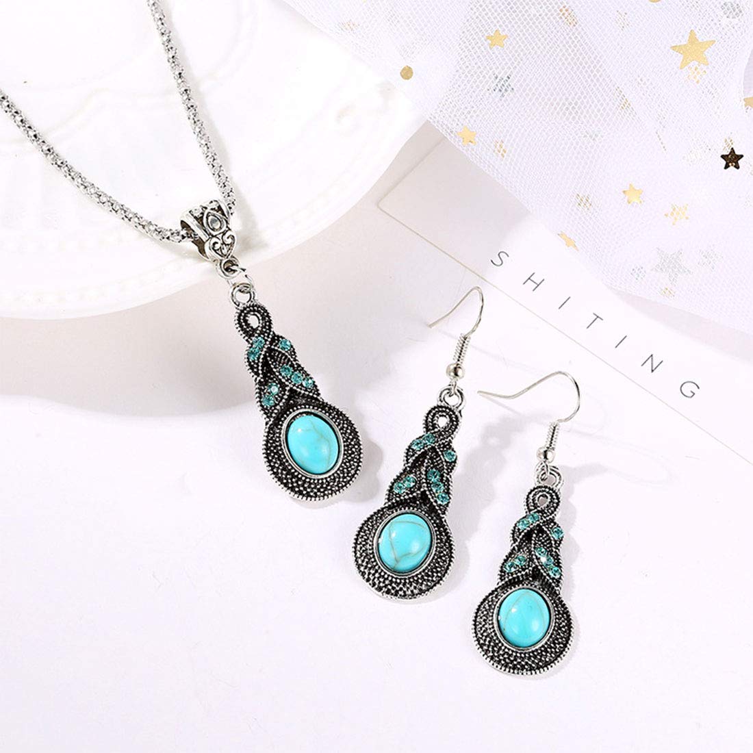 Rockyu ネックレス ピアス セット レディース ターコイズ 雫型 ボヘミアン風ジュエリー