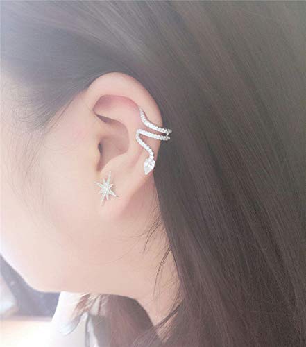Rockyu 蛇モチーフ ノンホールピアス レディース シルバー925 ジルコニア 両耳用セット