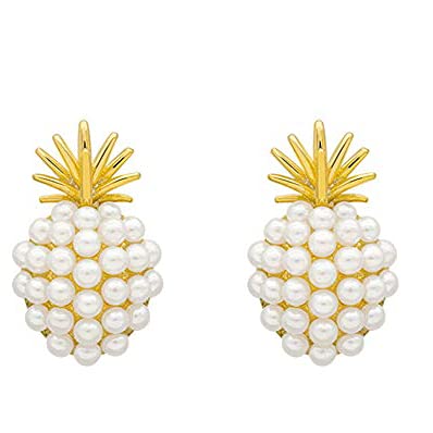 Rockyu ピアス レディース パイナップル ゴールド 真珠 925純銀製スタッド 可愛い両耳用