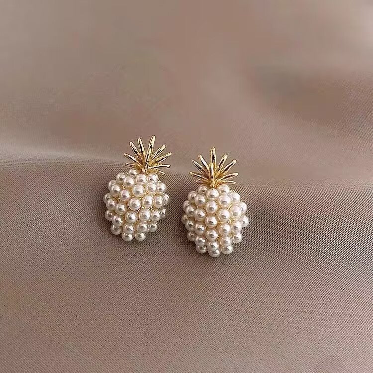 耳元でトロピカルにきらめく――Rockyuのパイナップルモチーフピアスは、遊び心と上品さを兼ね備えた一品です。小さな真珠をぎゅっと集めた果実部分に、ゴールドのリーフが華やかさをプラス。思わず「可愛い!」と声が出てしまうほど、ユニークで愛らしいデザインです。