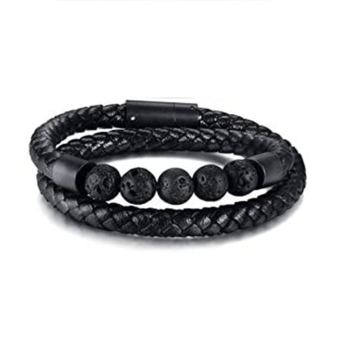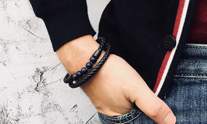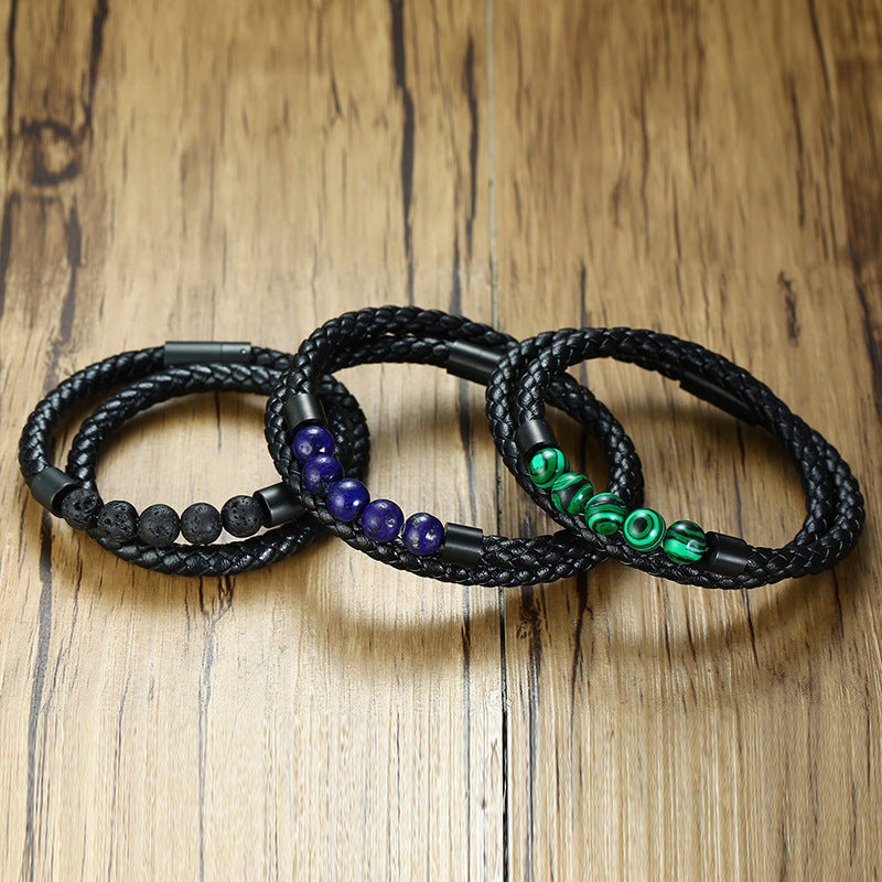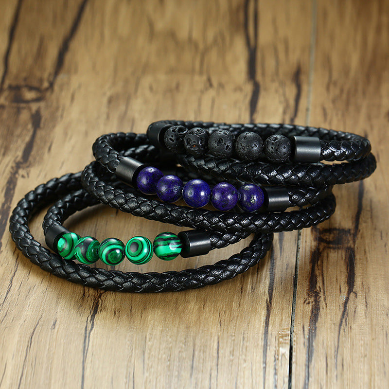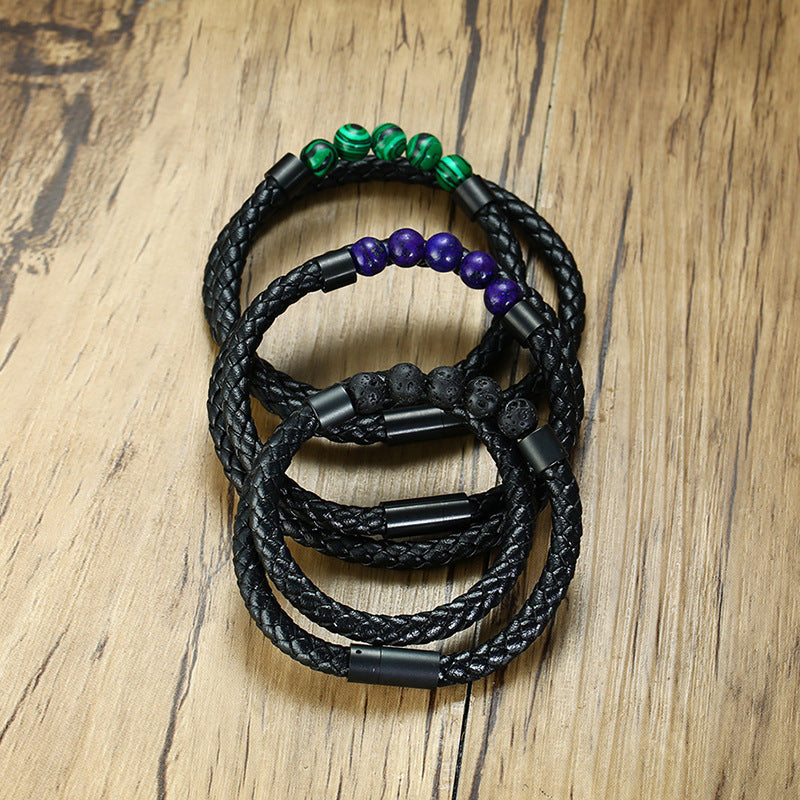 Rockyu 天然石 レザーブレスレット メンズ|編み込みデザイン&3カラー展開