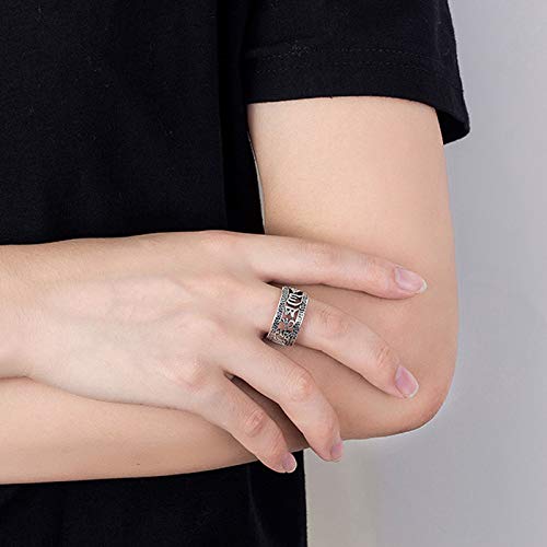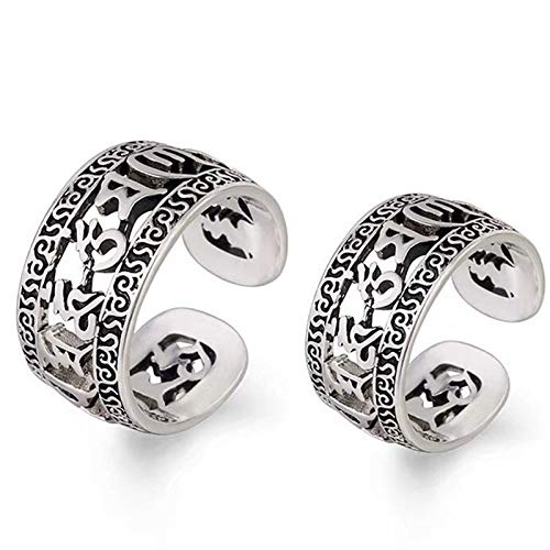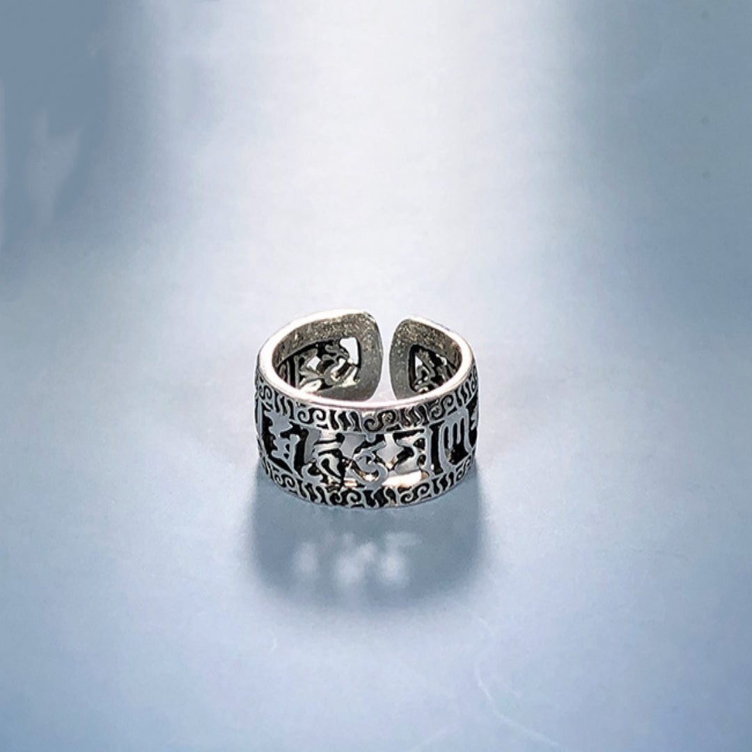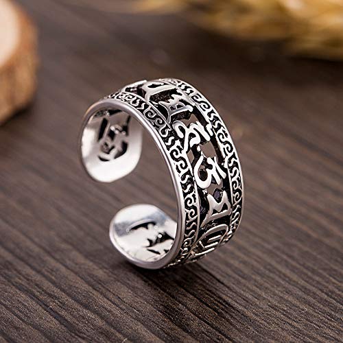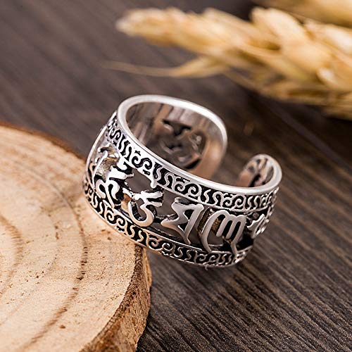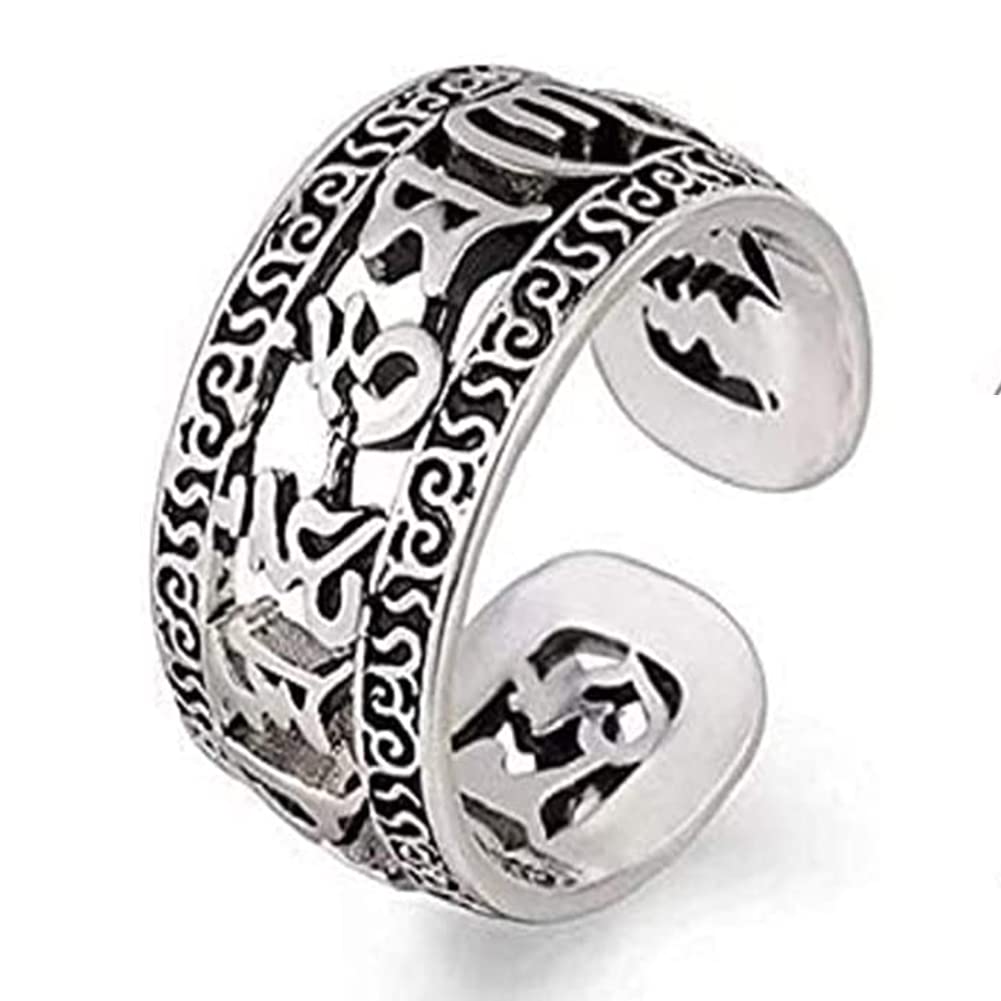 Rockyu 指輪 メンズ フリーサイズ 六字真言シルバーリング 厄除け・お守り アンティーク風