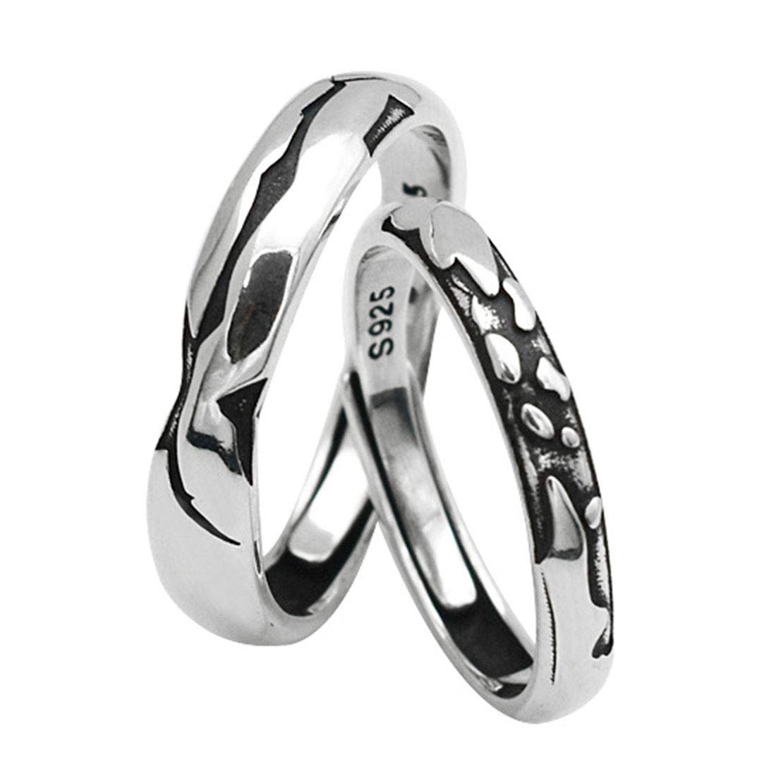 Rockyu ペアリング シルバー925 シンプル波模様 メンズ フリーサイズ 結婚・記念用Rinma-E135-pair