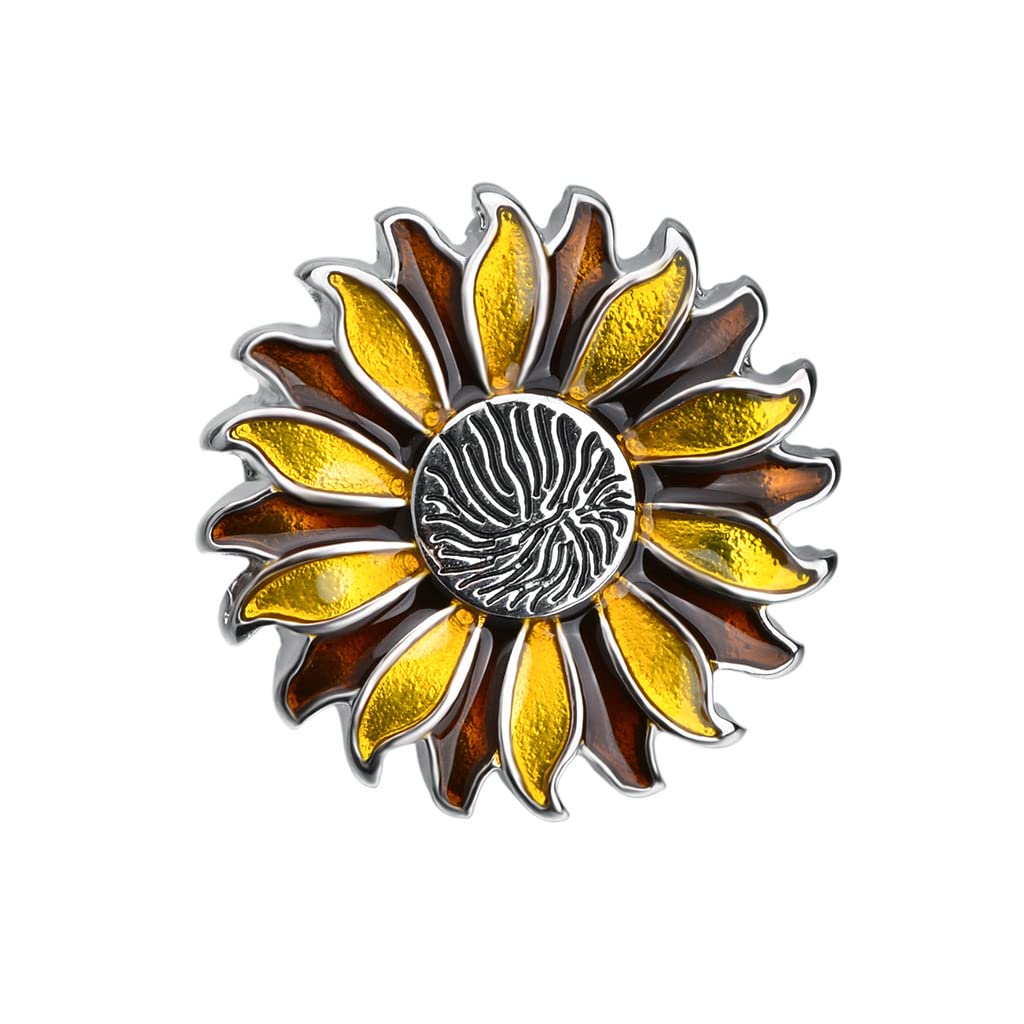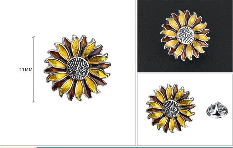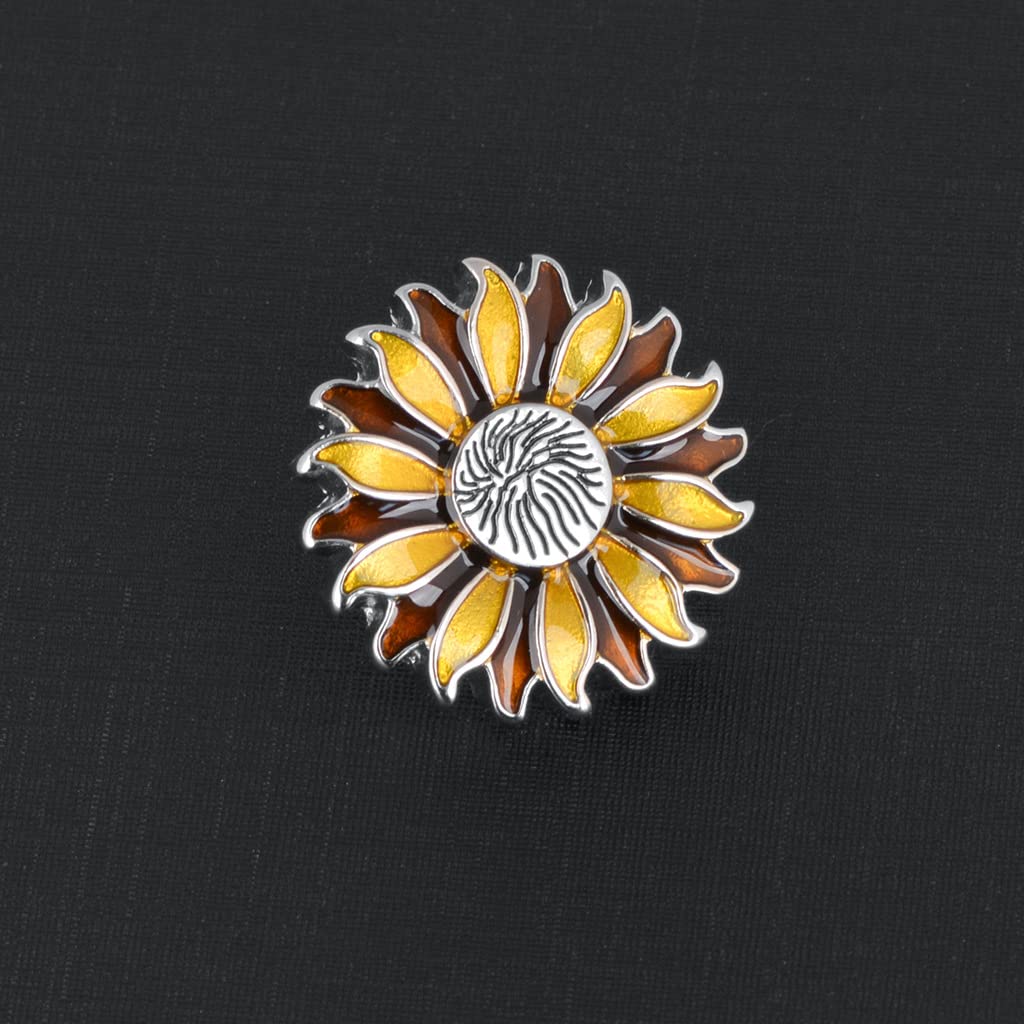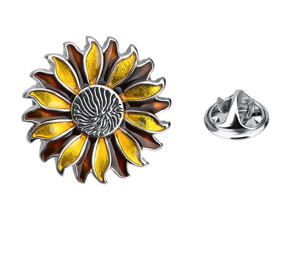 Rockyu ひまわりラペルピン メンズ ゴールド シルバー サンフラワー ピンブローチ フォーマル アクセサリー 結婚式 ビジネス 誕生日 プレゼント