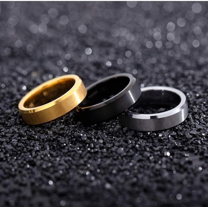 Rockyu タングステンリング メンズ 6mm 幅 シルバー・ブラック・ゴールド 平打ち シンプルデザイン