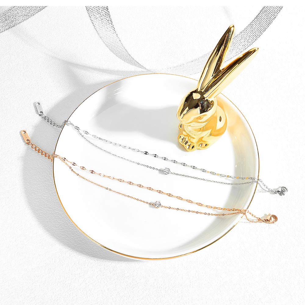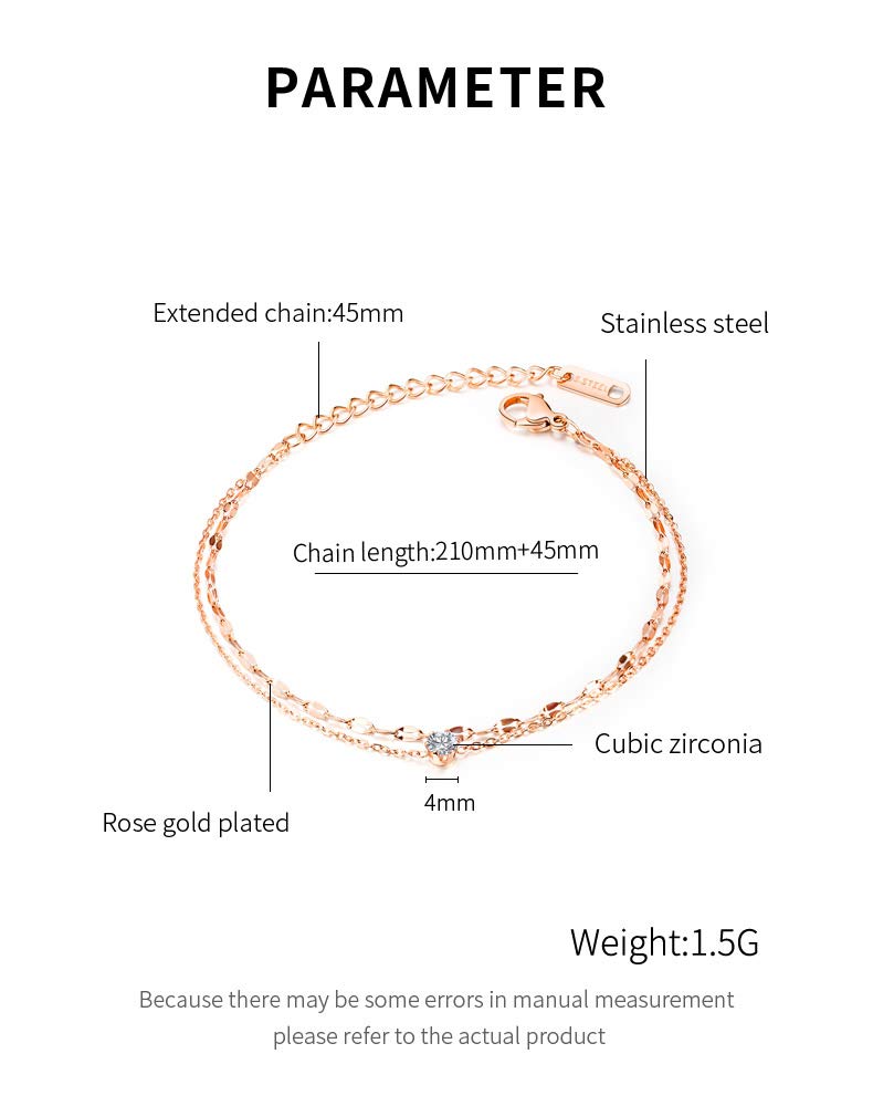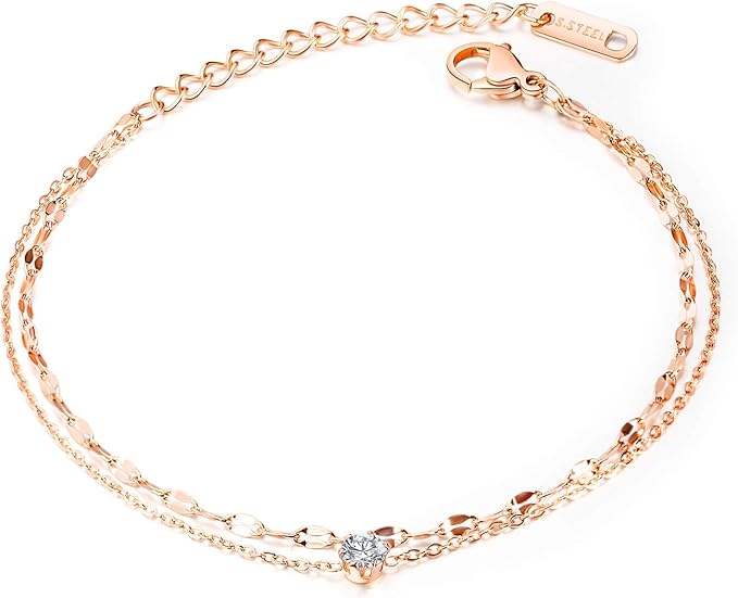Rockyu アンクレット レディース ローズゴールド&シルバー ダブルチェーン ジルコニア付き