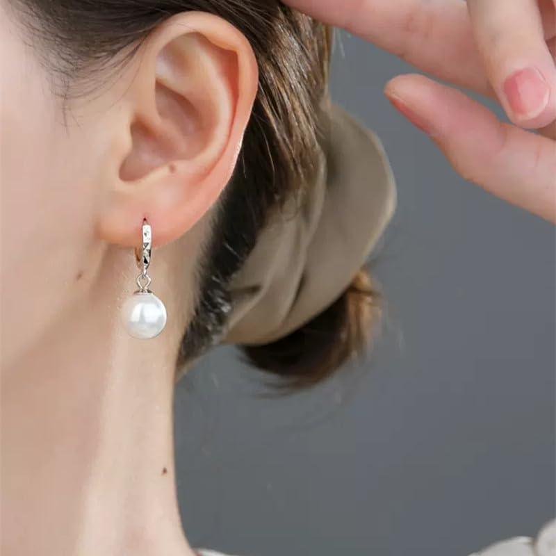 Rockyu のフープパールイヤリングは、耳元で上品に揺れるクラシカルデザイン。丸みのある一粒パールがシンプルながら華やかさを添え、シルバーの輝きと調和して、顔周りを明るく見せてくれます。