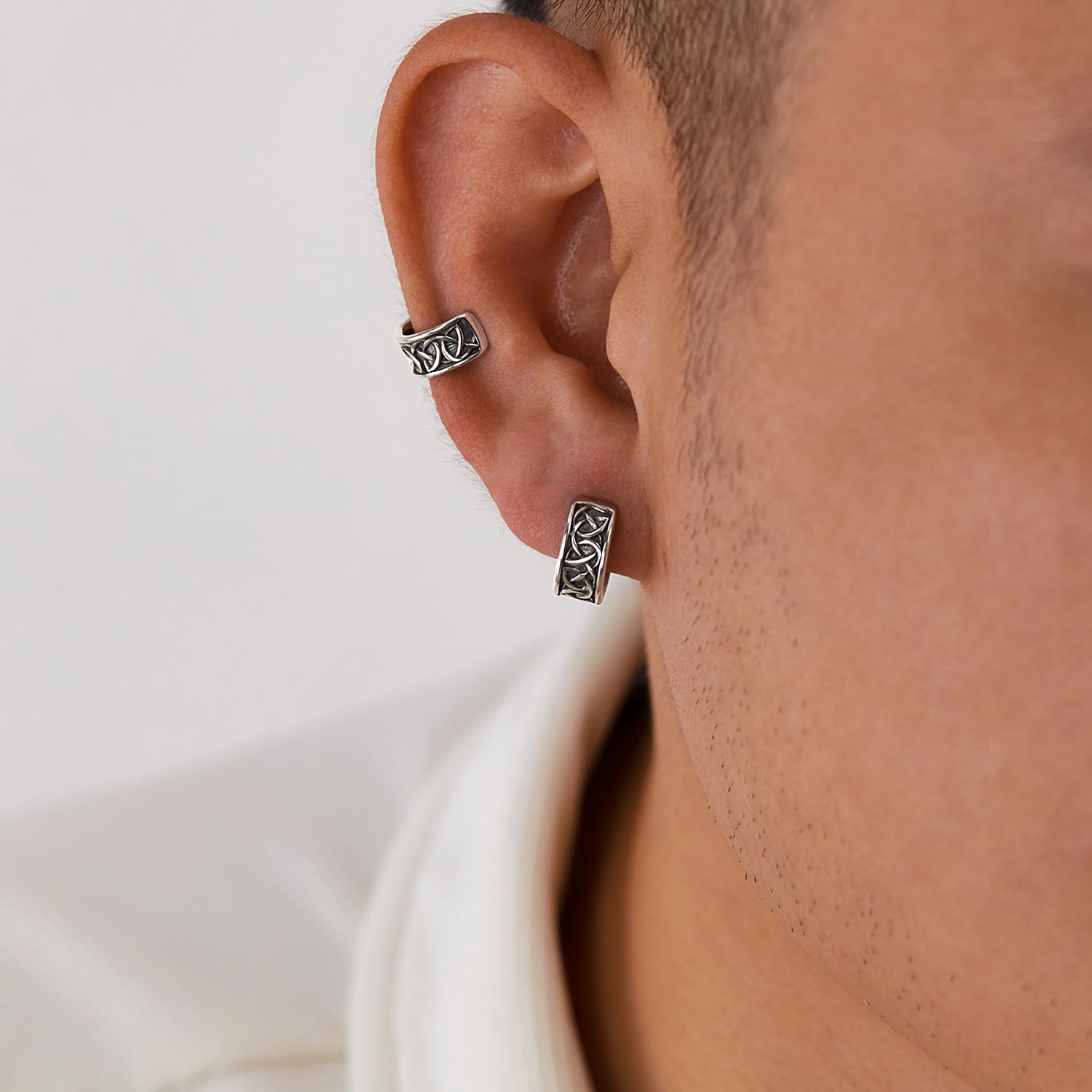 Rockyuのステンレス製イヤーカフは、ピアス穴不要で気軽に装着できるノンホールタイプ。幅6mm・直径13mmの程よいサイズ感で、幾何学模様が耳元にアクセントをプラスします。重さはわずか3gと軽量で、長時間の着用も快適。ステンレス素材はサビや変色に強く、日常使いからヒップホップやストリートファッション、カジュアルスタイルまで幅広く対応。メンズ・レディース問わず使えるユニセックスデザインで、誕生日や記念日のプレゼントにもおすすめです。